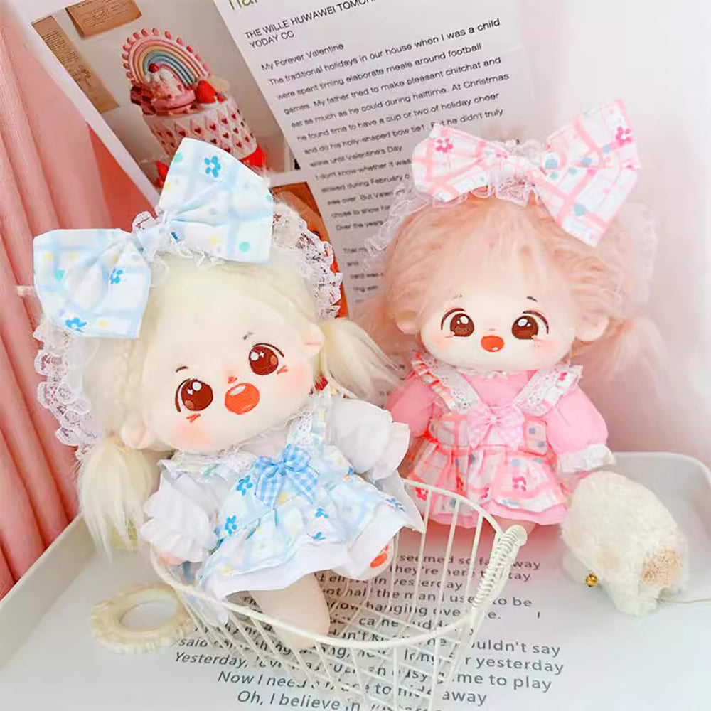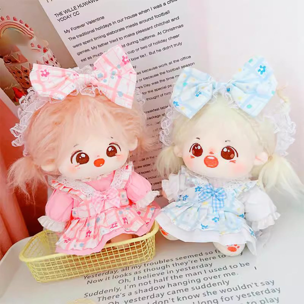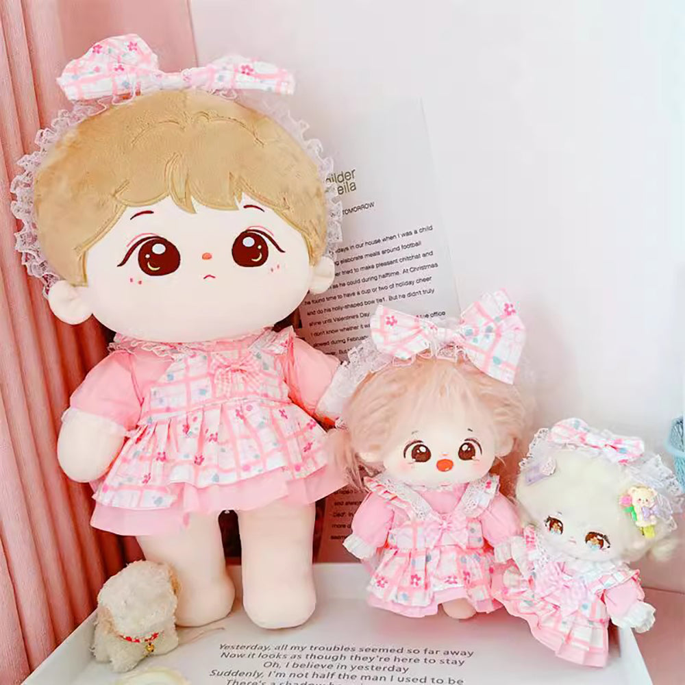 niannyyhouse 10cm~15cm 20cm 40cm Plush Doll Clothes Headwear Shirts Skirt Plaid Back Dress Outfit Doll Dressup