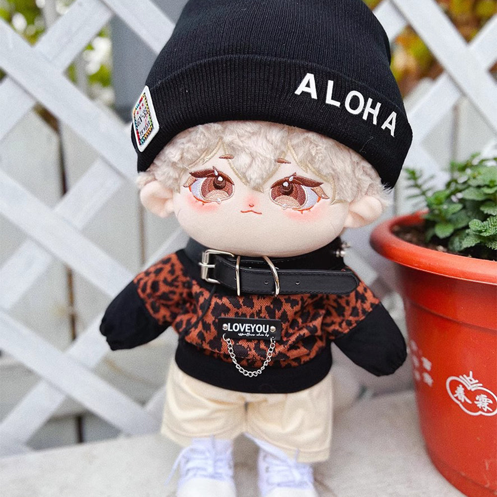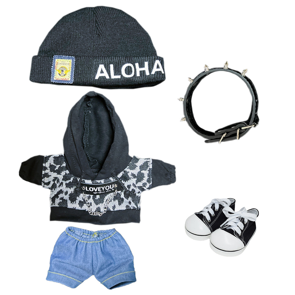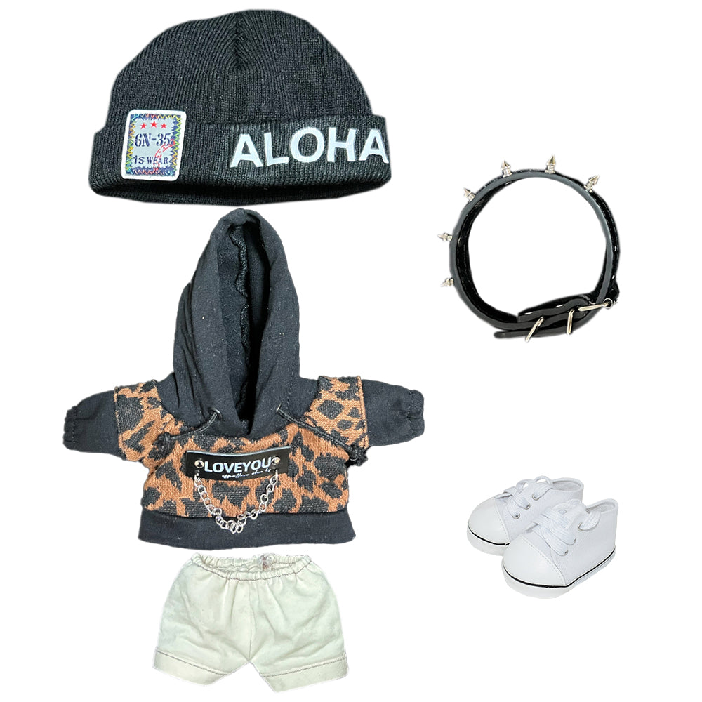 niannyyhouse 40cm Plush Doll Clothes Loose Hat Hoodie Pants Collar Canvas Shoes Leopard Print Set Doll Accessories