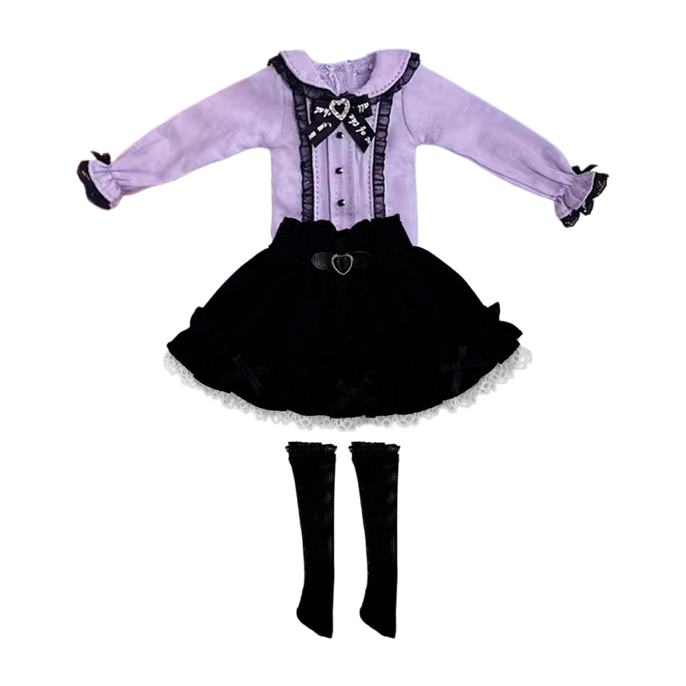 niannyyhouse Doll Clothes for OB24 28cm/11in Fashion Doll, Dark Lace Suit with Shirt, Skirt, and Socks, Action Figure Dress Up Accessories