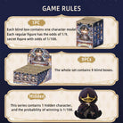 Blind Box: Blind boxes are completely random, and we do not accept requests for specific styles. The probability of opening each ordinary doll is 1/9. This series contains 1 hidden doll, and the probability of winning is 1/108. 1PC---(Each blind box contains one doll. Before opening, no one knows which model is in the box-including ourselves.)9PCs---(The whole set contains 9 blind boxes, no duplication. If your blind box contains duplicate dolls, please return the duplicate model and we will send the missing doll.)