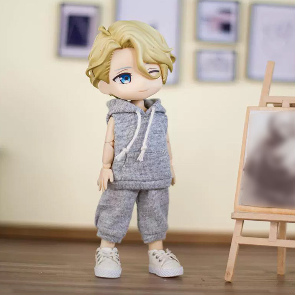 niannyyhouse OB11 Doll Clothes, Sleeveless Hoodie with Pants, 1/12 Scale BJD Action Figure Accessories