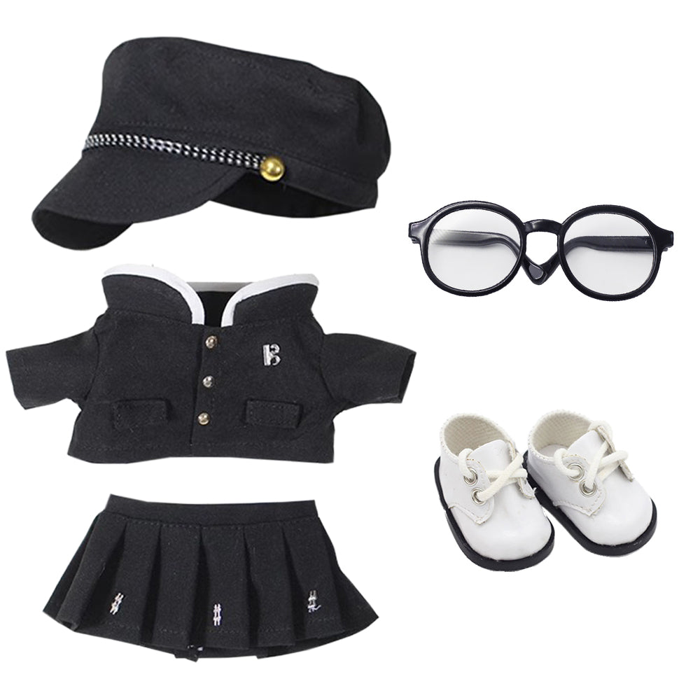 niannyyhouse 20cm Plush Doll Clothes Hat Jacket Skirt Pants Glasses Shoes School Uniform 8in Stuffed Doll Dressup