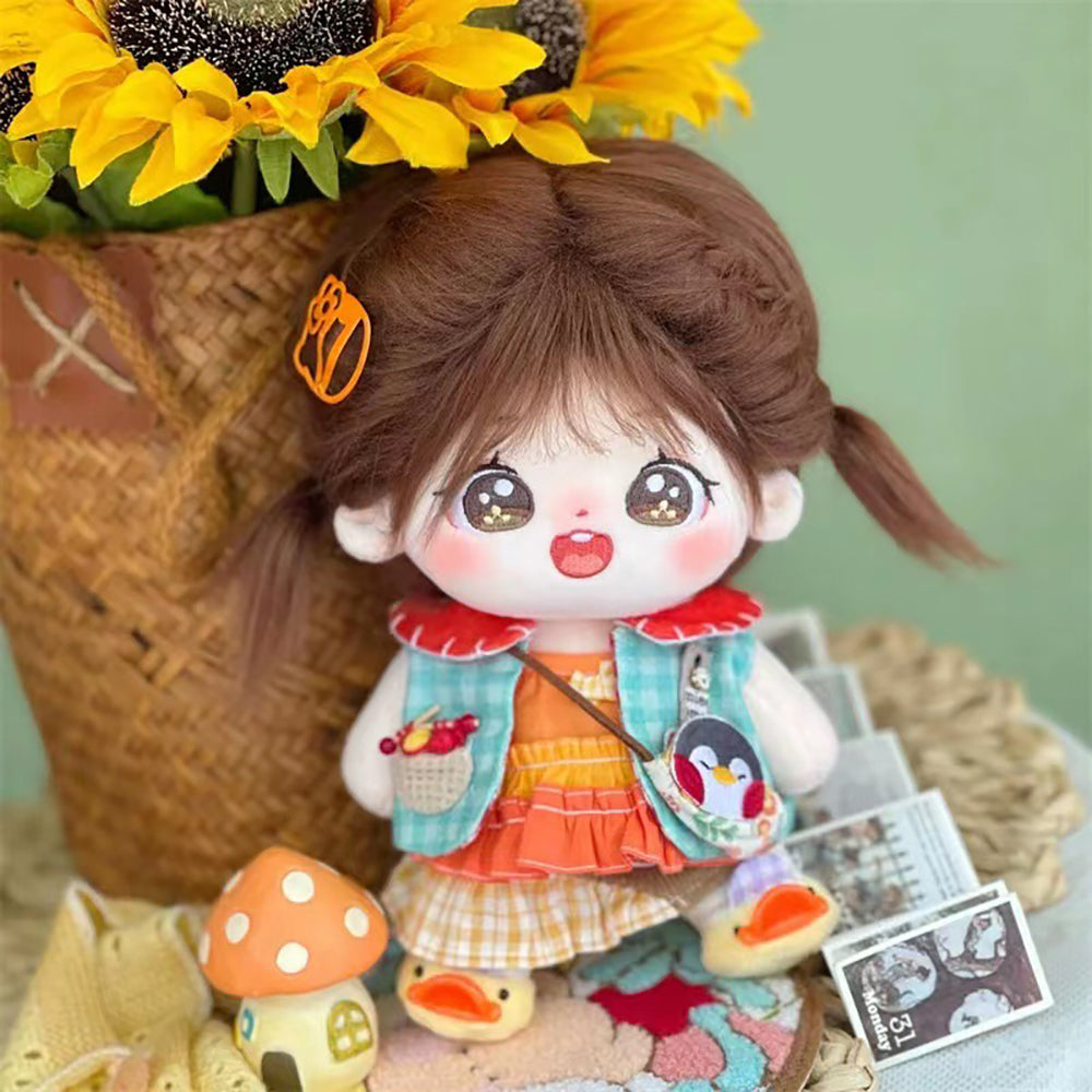 niannyyhouse 20cm Plush Doll 8in Straight Hair Curly Hair Girl Humanoid Stuffed Body Wearable Clothing Dress Up Gifts(No Clothes)