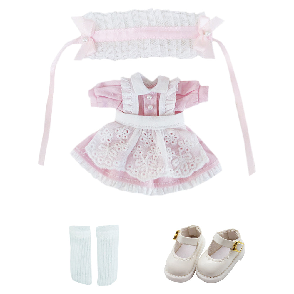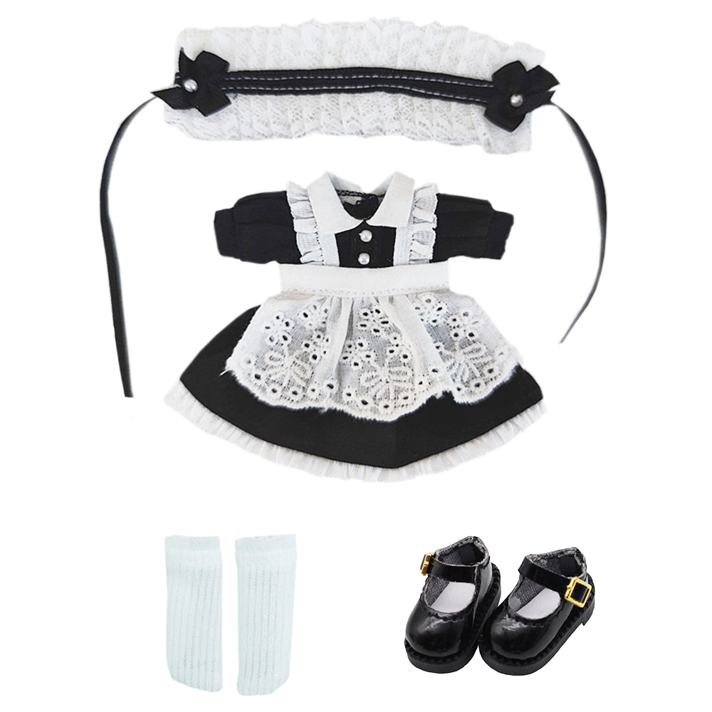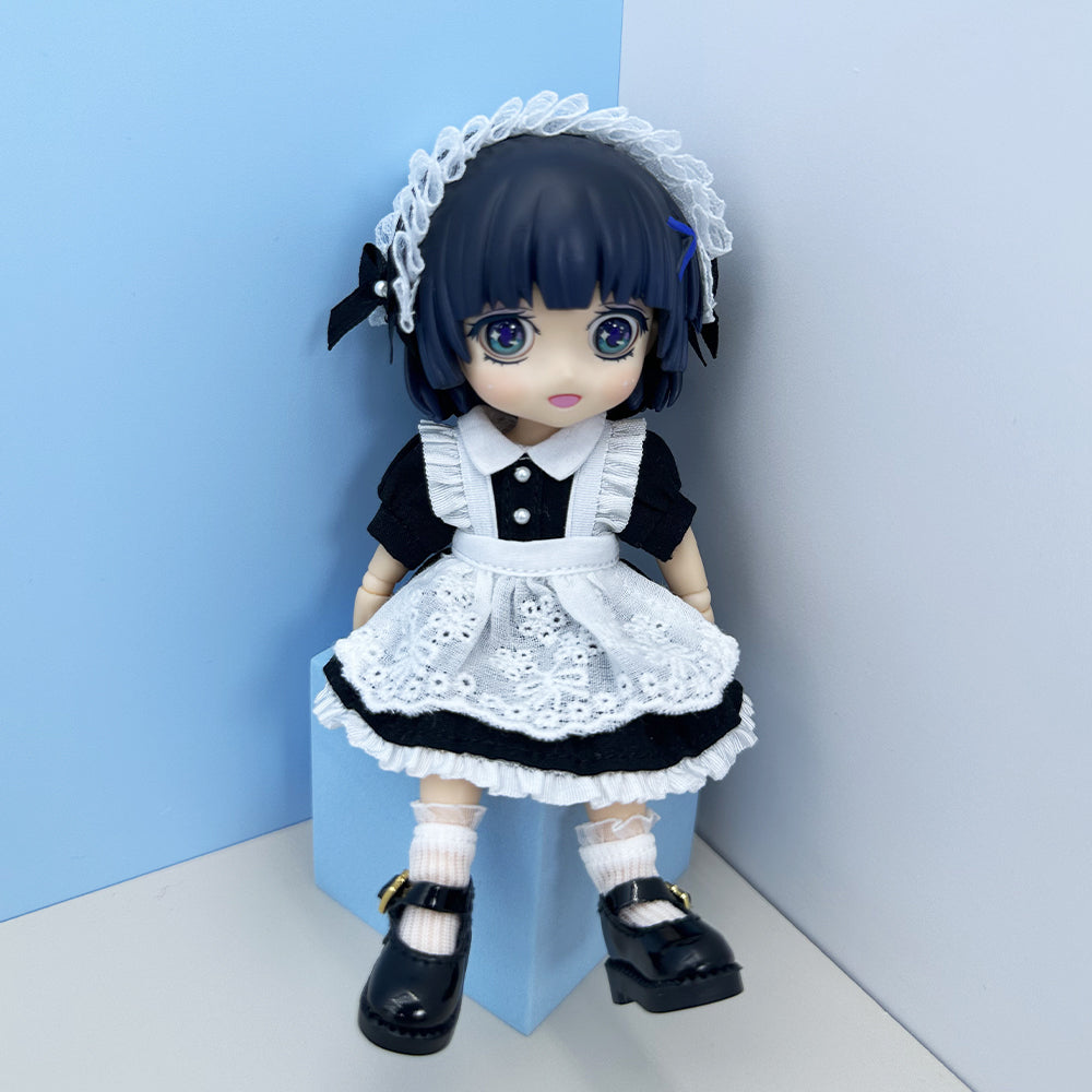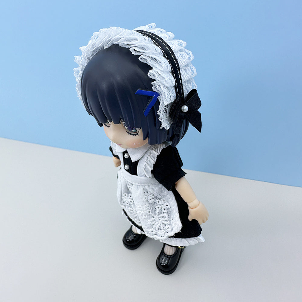 niannyyhouse 1/12 BJD Doll Clothes Headwear Dress Apron Shoes Socks Maid Outfit OB11 4.3in Action Figures Doll Dressup
