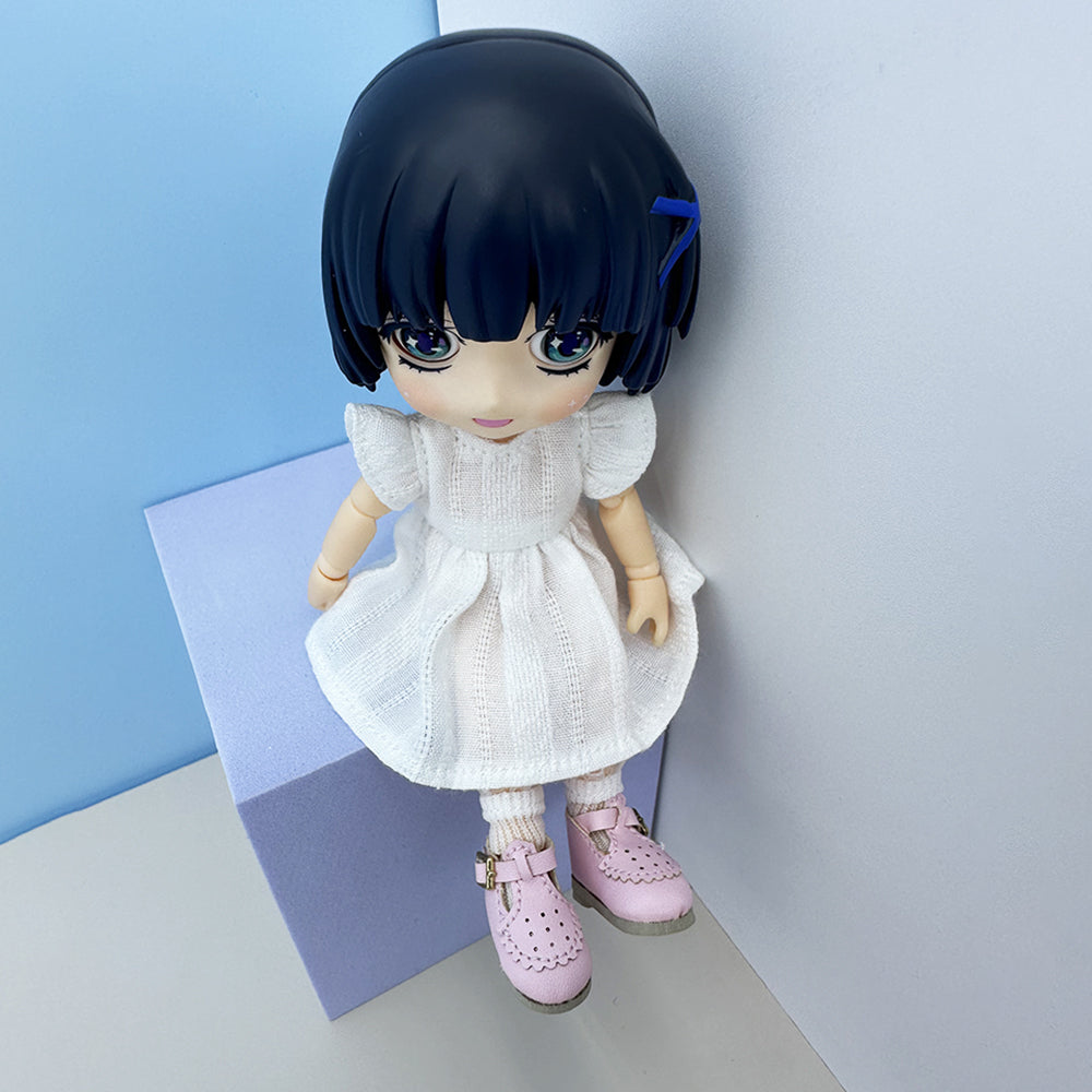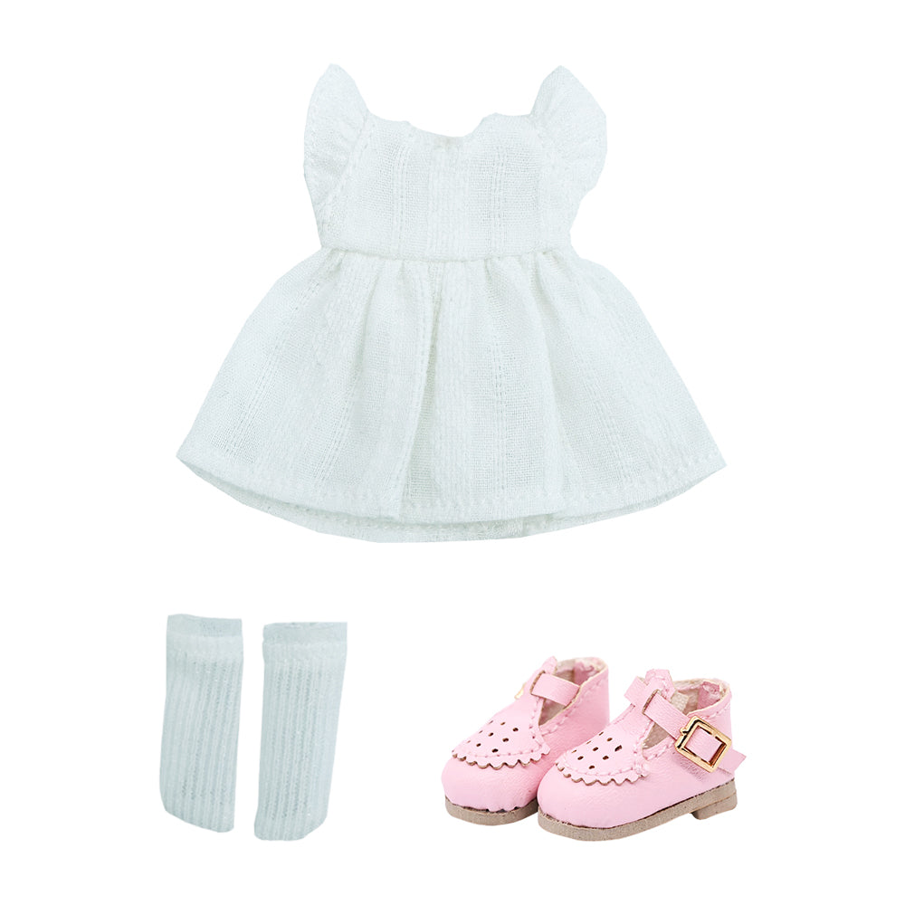 niannyyhouse 1/12 BJD Doll Clothes White Dress Shoes Socks OB11 4.3in Action Figures Doll Dressup