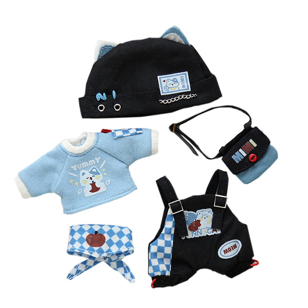 1. Package Included: Hat+T-shirt+Overalls+Scarf+Backpack 5-Piece Set(No dolls)