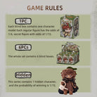 Blind Box: Blind boxes are completely random, and we do not accept requests for specific styles. The probability of opening each ordinary doll is 1/6. This series contains 1 hidden doll, and the probability of winning is 1/72. 1PC---(Each blind box contains one doll. Before opening, no one knows which model is in the box-including ourselves.)6PCs---(The whole set contains 6 blind boxes, no duplication. If your blind box contains duplicate dolls, please return the duplicate model and we will send the missing doll.)