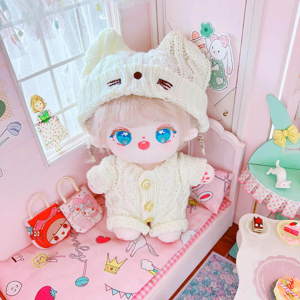 niannyyhouse 20cm Plush Doll Clothes Cat Hat Woolen Thread Onesies 8in Doll Accessories