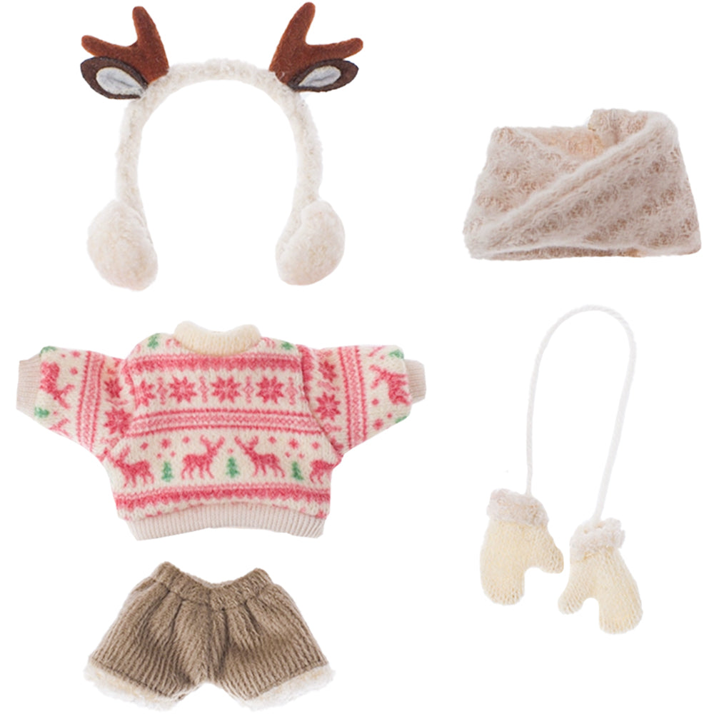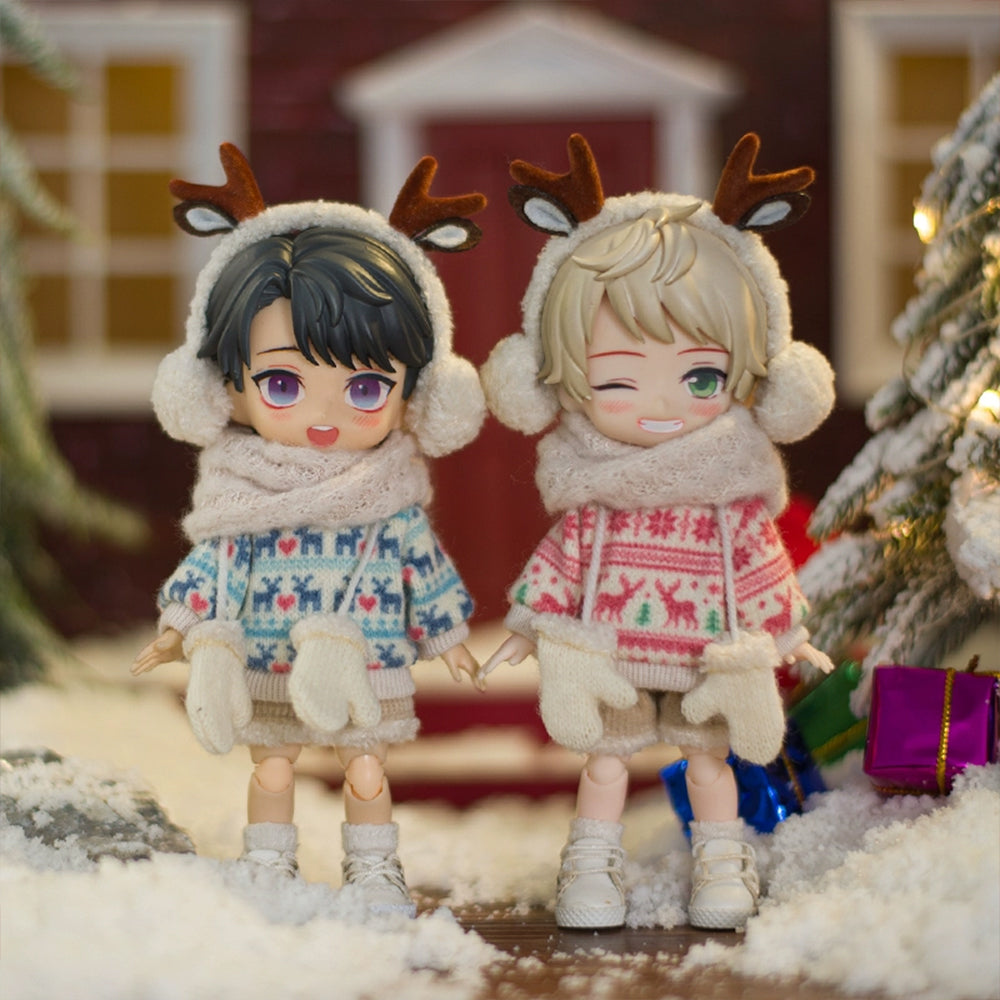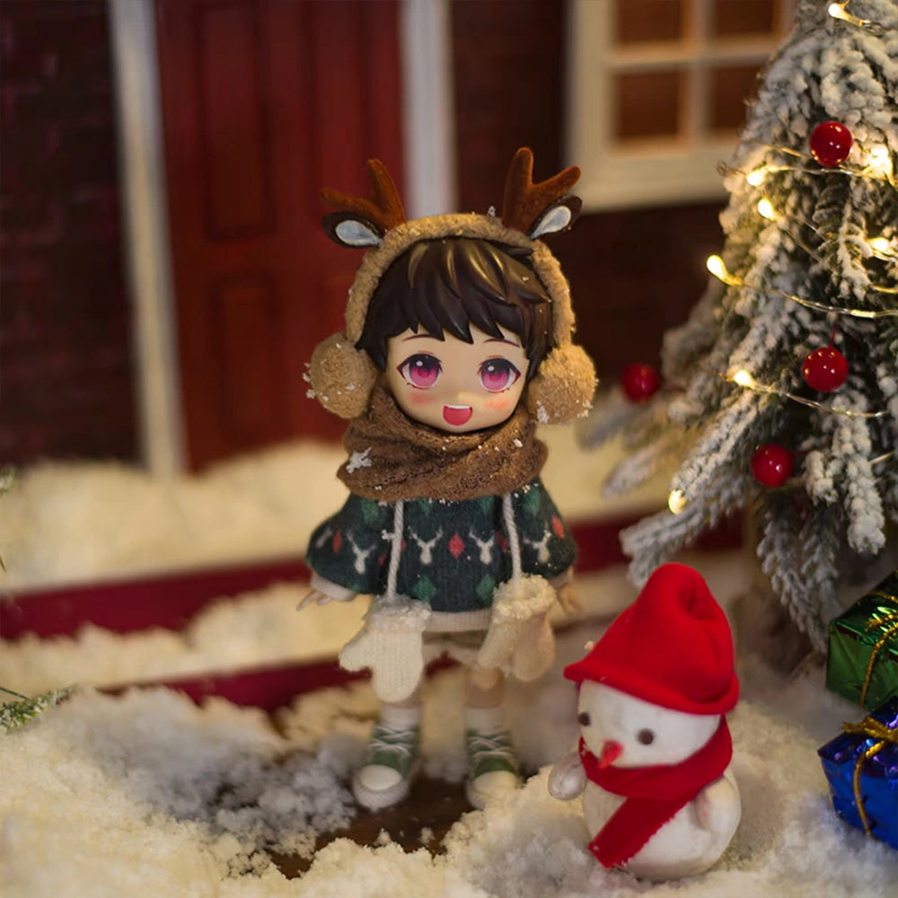 niannyyhouse OB11 Doll Clothing Set, Elk Sweater with Headwear, Scarf, Shorts, Gloves, 1/12 Scale BJD Action Figure Accessories