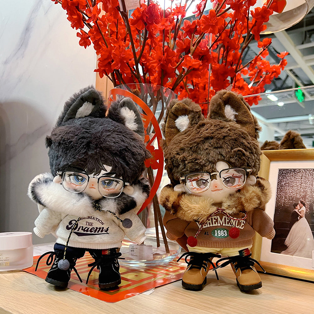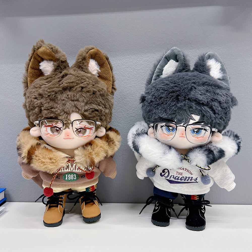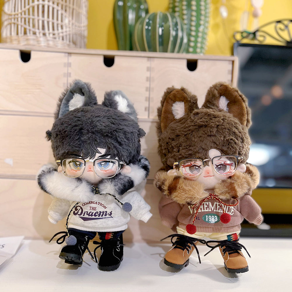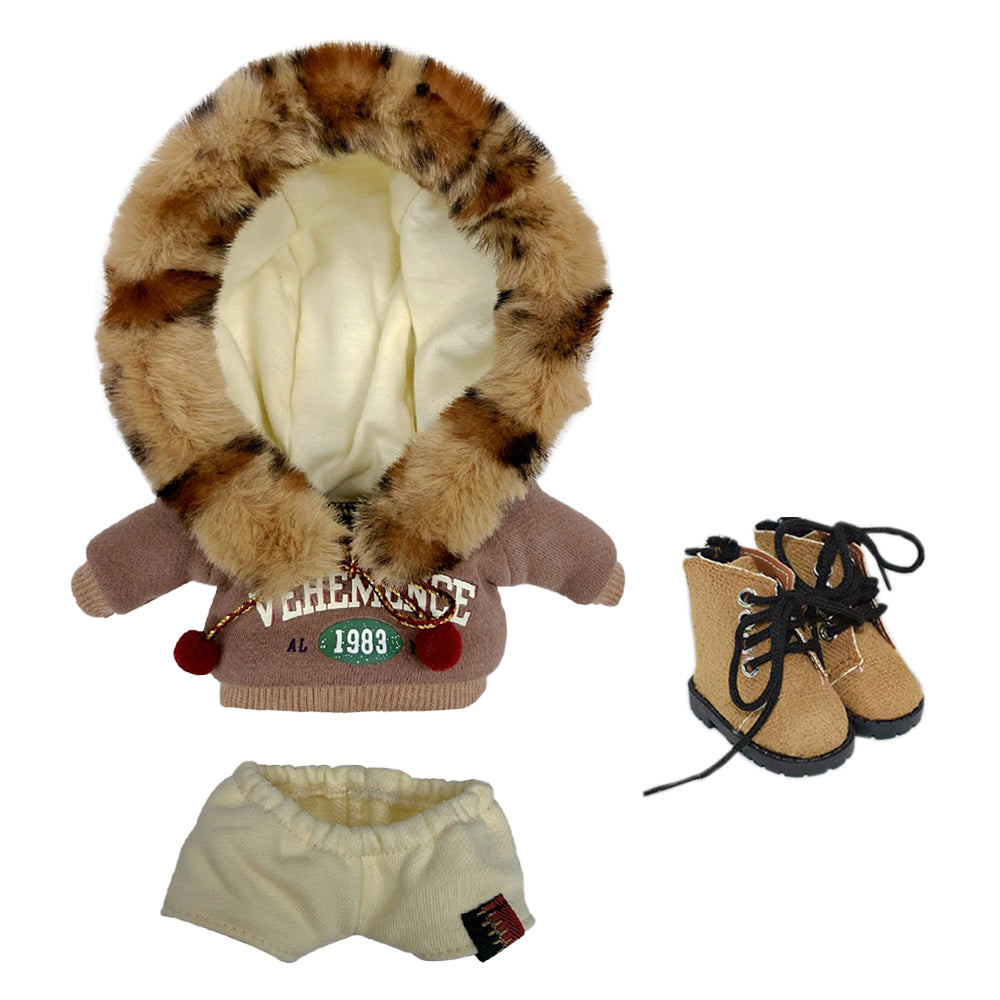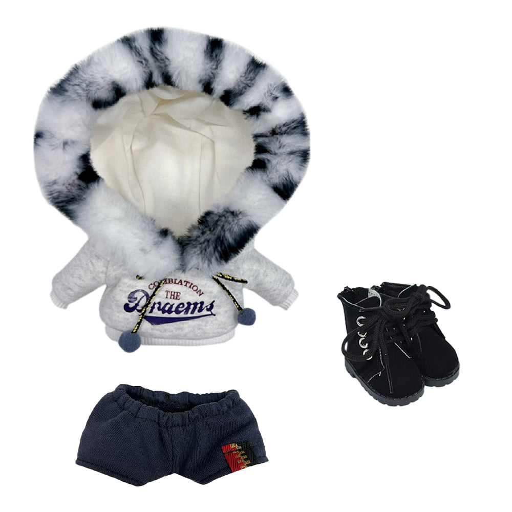 niannyyhouse 15cm 20cm Plush Doll Clothes Loose Fur Collar Set Hoodie Pants Shoes Doll Dressup
