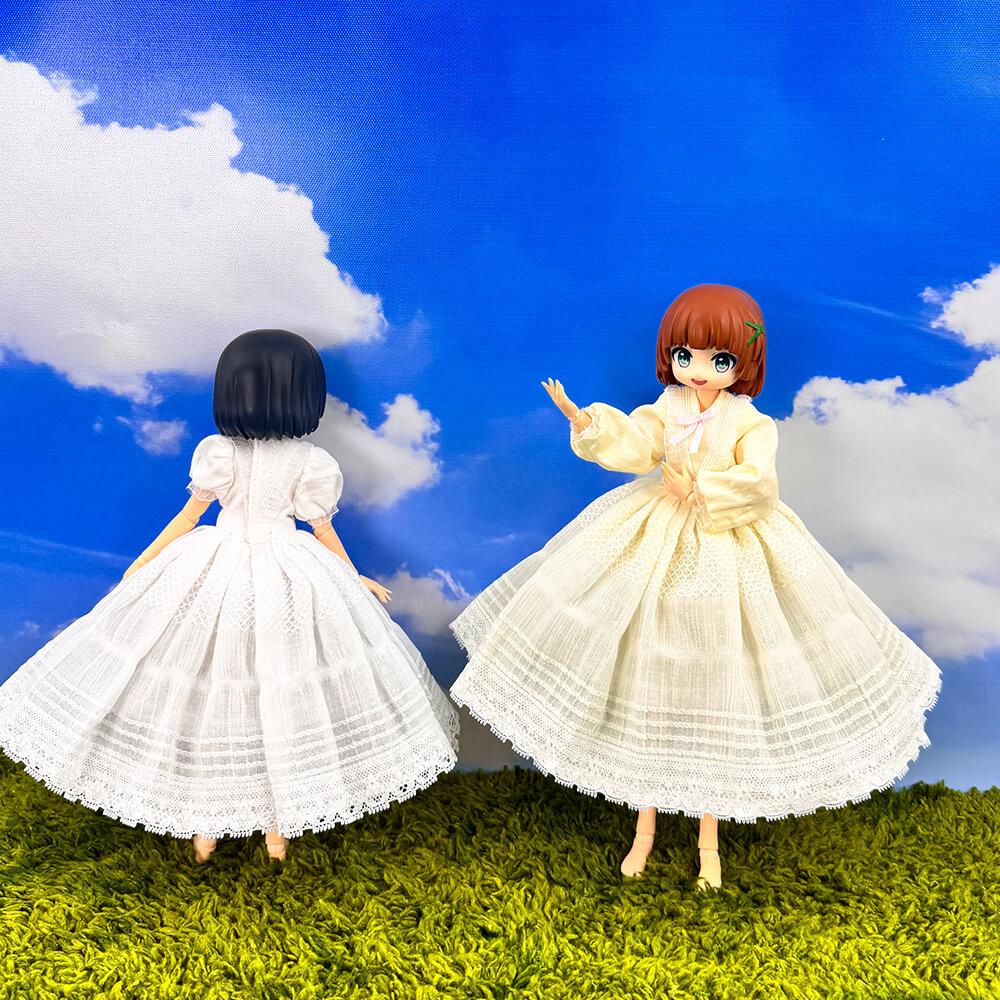 The dress came fairly fast, around two weeks? And the quality of it was good, solid fabric. My plushie is wearing it and being cute.