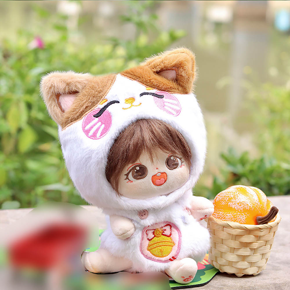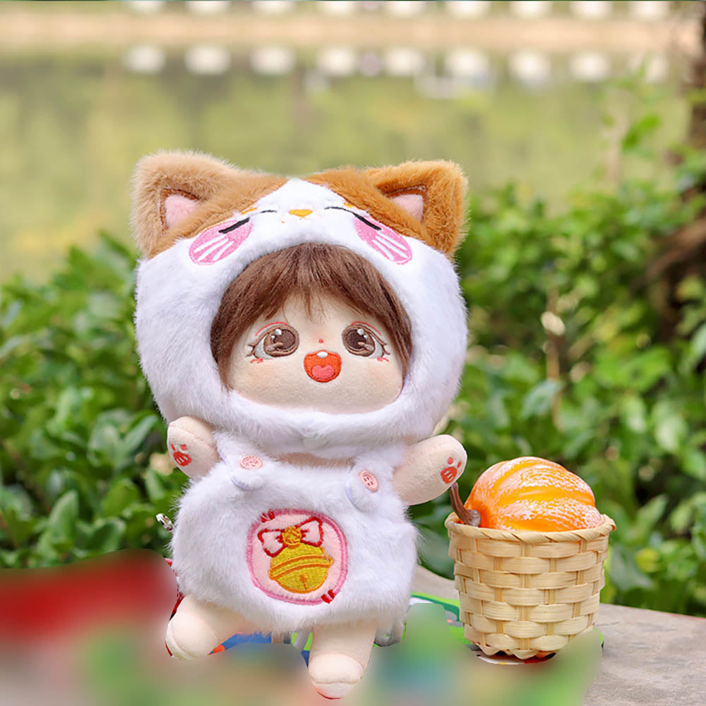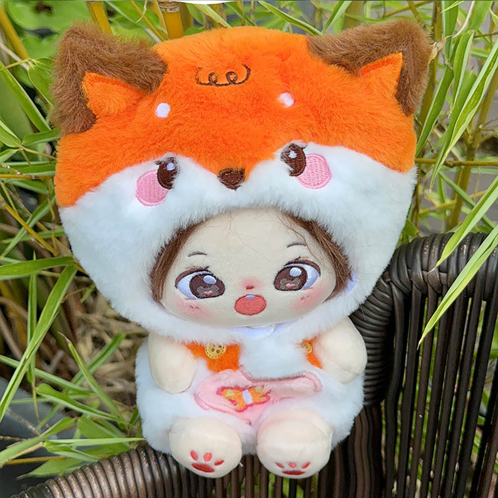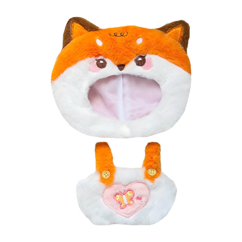 niannyyhouse 20cm Plush Doll Clothes Fox Panda Frog Kitten Pattern Headgear Overalls 8in Doll Dressup
