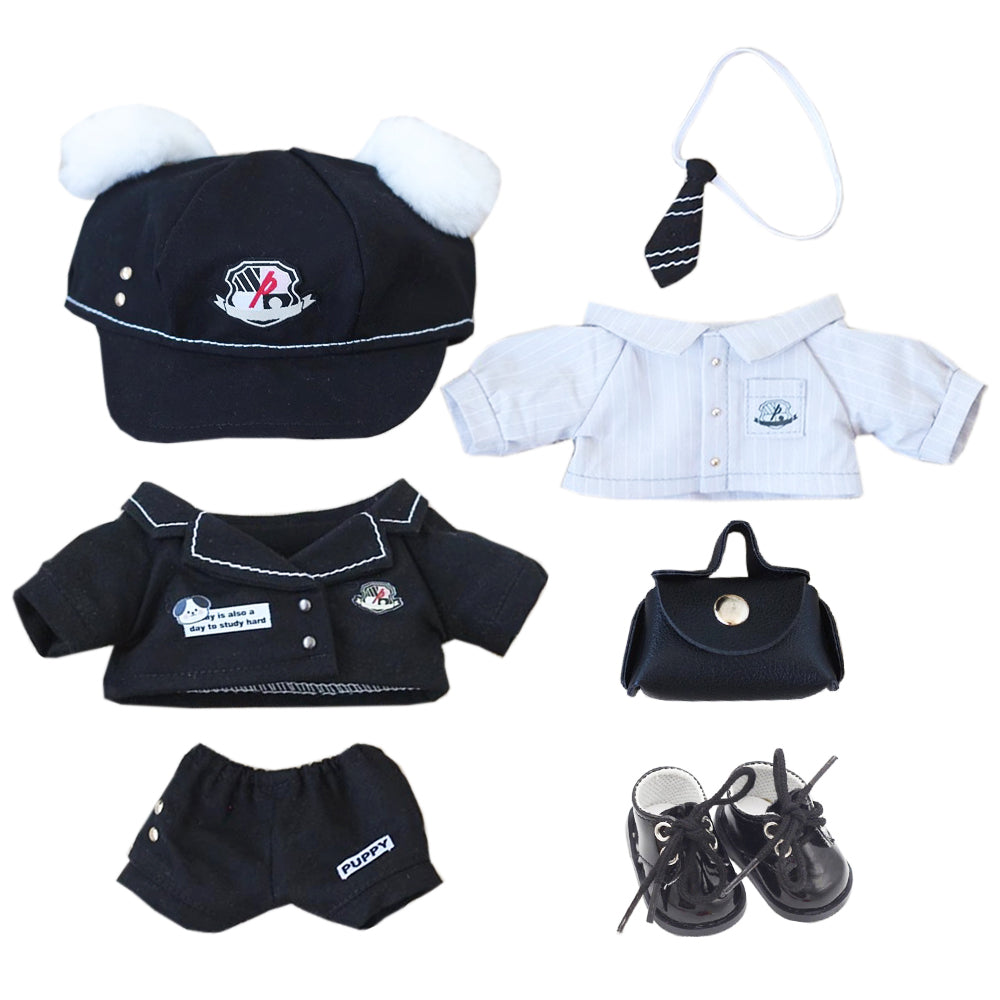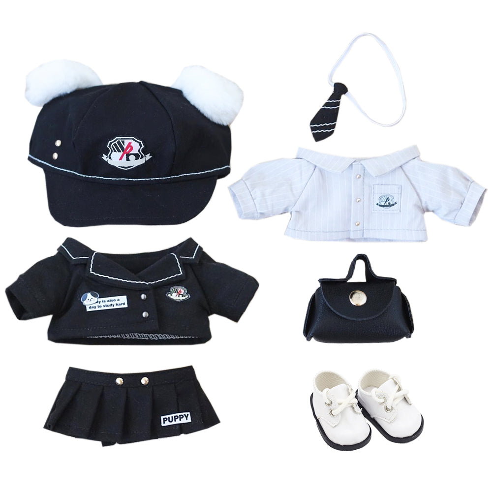 niannyyhouse 20cm Plush Doll Clothes Hat Coat Skirt Trousers Shirt Tie Bag Shoes College Uniform 8in Doll Dressup