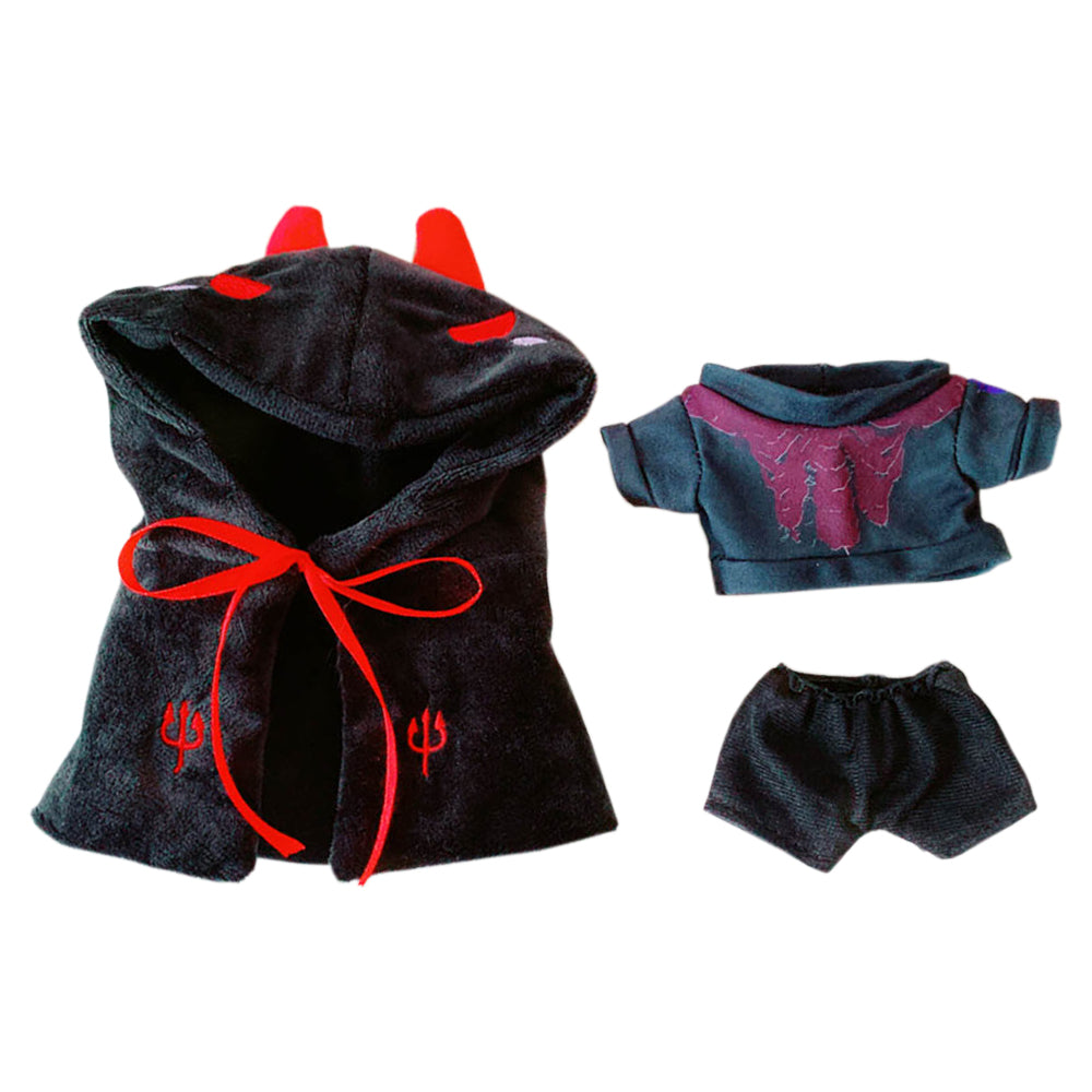 niannyyhouse Demon Clothes Suit 8in/20cm Plush Doll Clothes Shawl+ T-shirt + Shorts 3-Piece Set Doll Dressup Black Robe