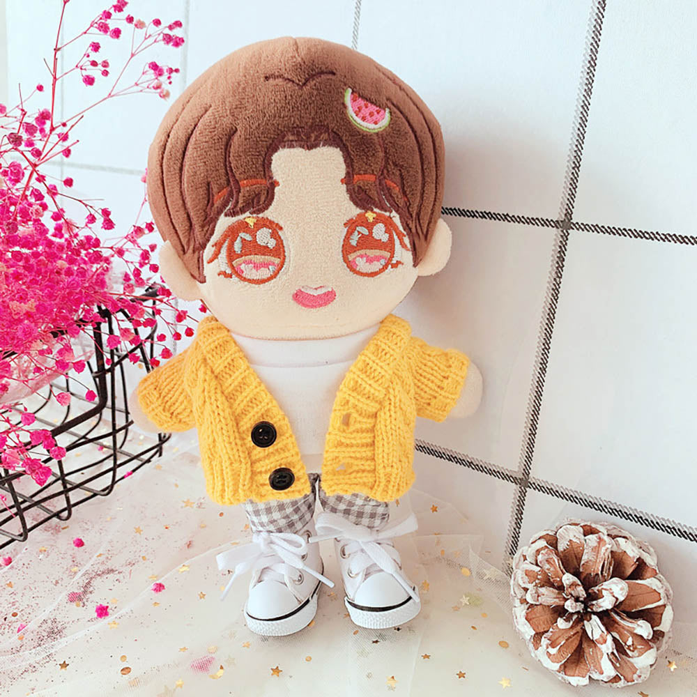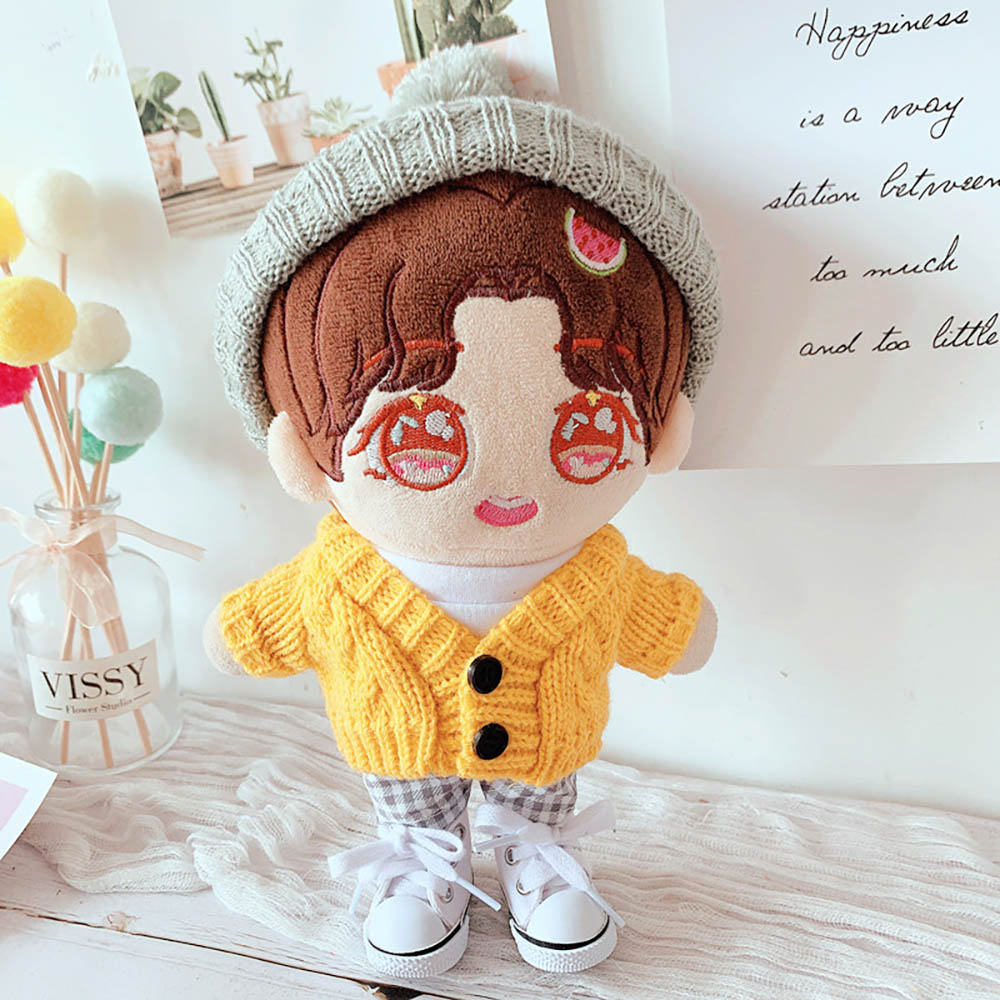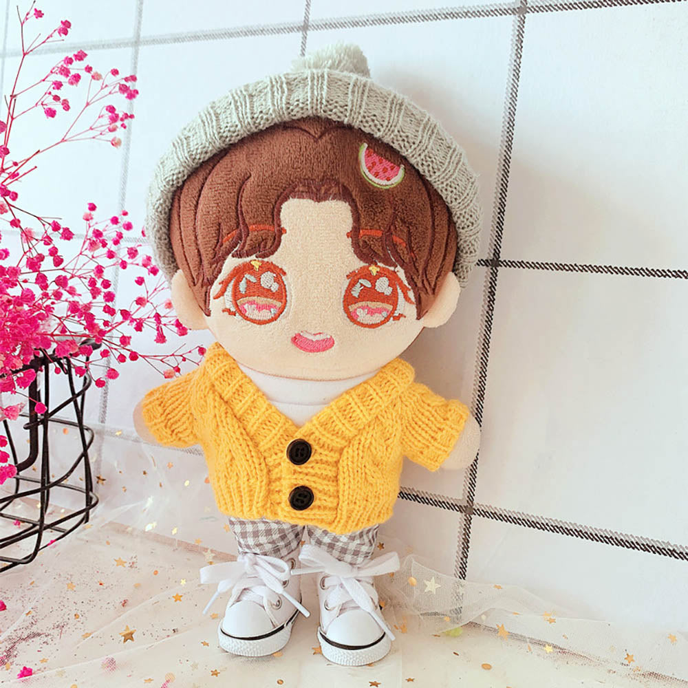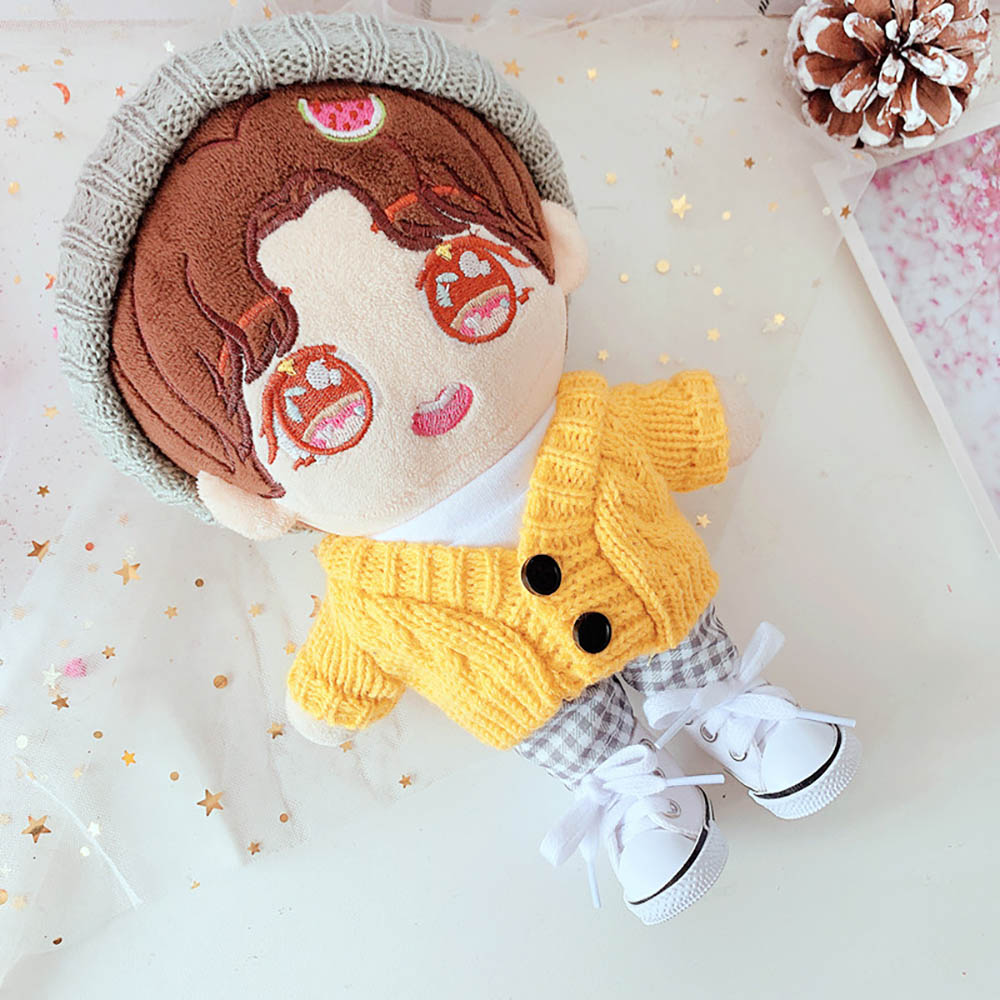 niannyyhouse Hat Yellow Sweater T-shirt Plaid Pants 4-Piece Set Dress Up 8in 20cm Plush Doll Stuffed Figures Toys Clothes Accessories