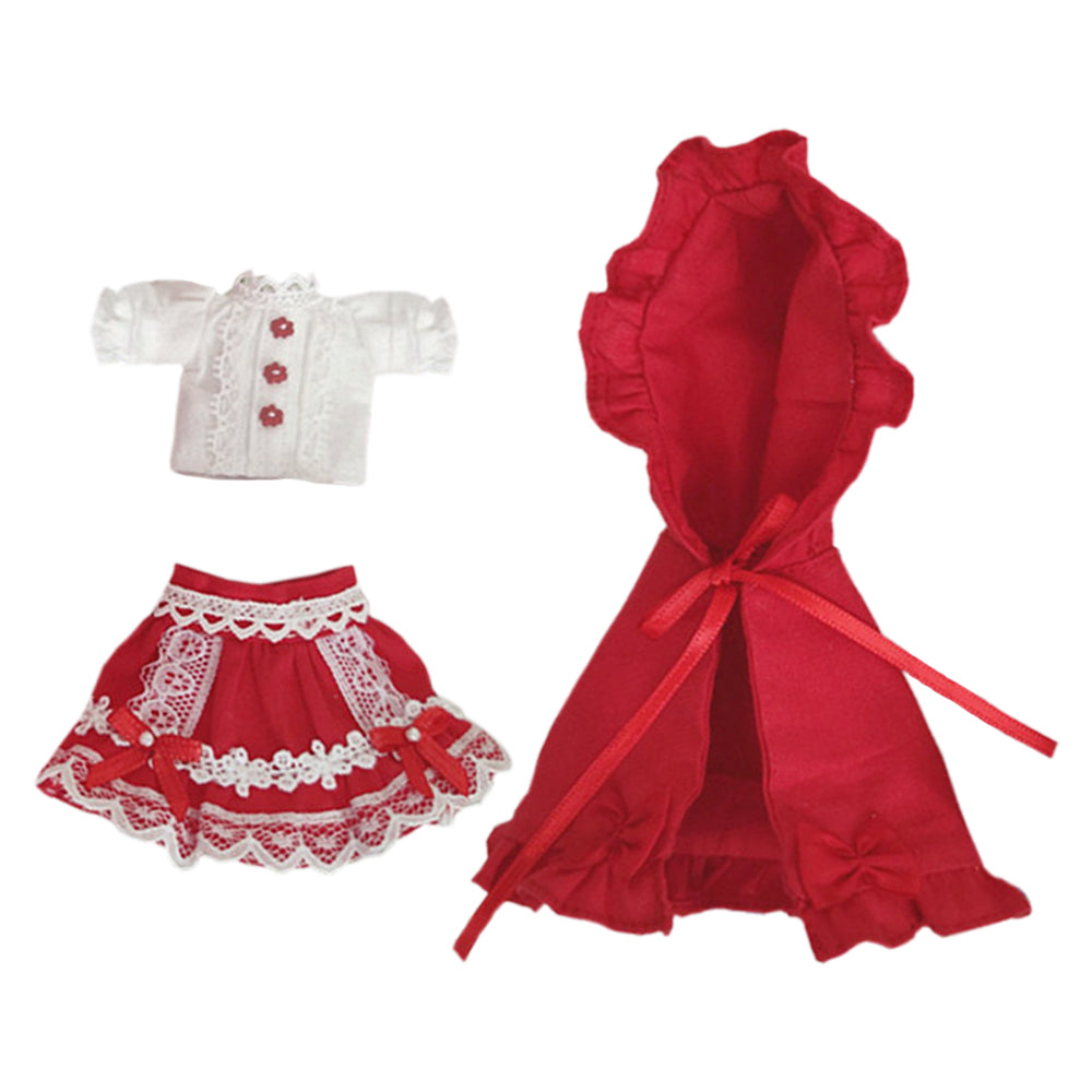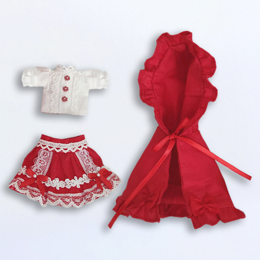 niannyyhouse Cloak + Shirt + Skirt 3-Piece Set Little Red Riding Hood Suit 1/12 BJD Doll OB11 Size Action Figures Clothing Accessories