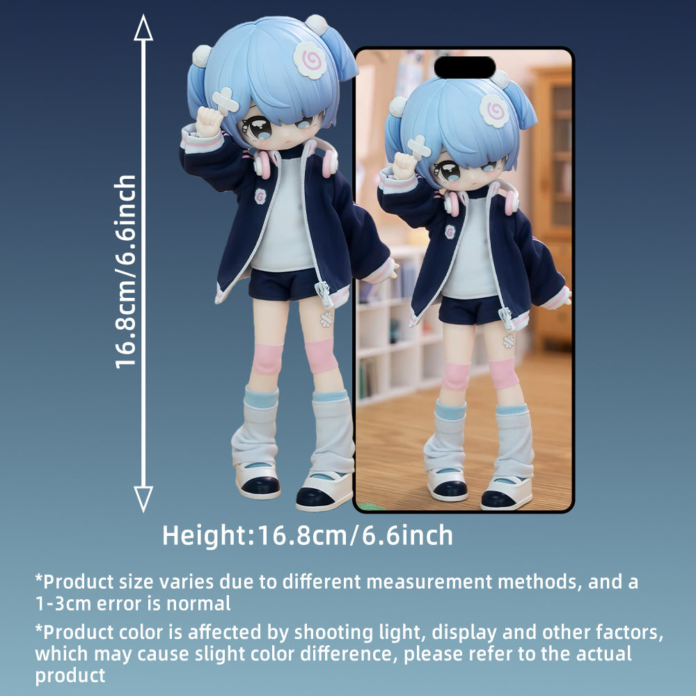 Size: The doll is about 16.8 cm/6.6 inches tall. making it an ideal size for display on shelves, desks, or in collector cases.