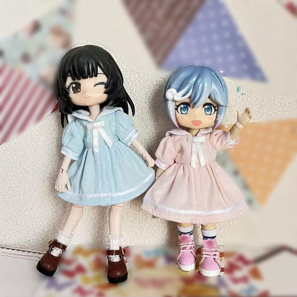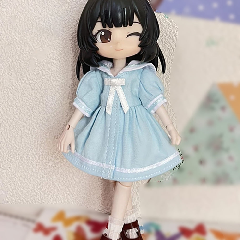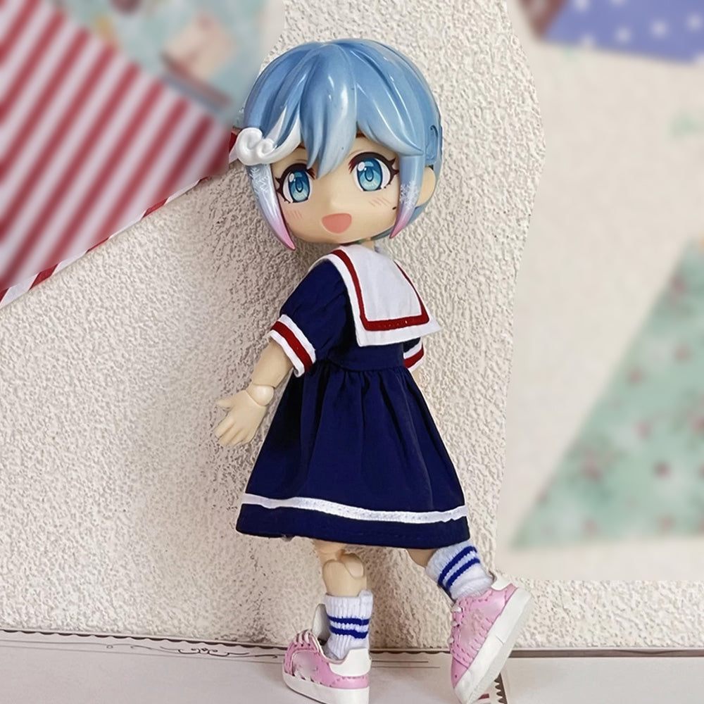 niannyyhouse OB11 Doll Clothes Sailor Style Dress, Underwear and Socks Set, 1/12 Scale BJD Action Figure Accessories