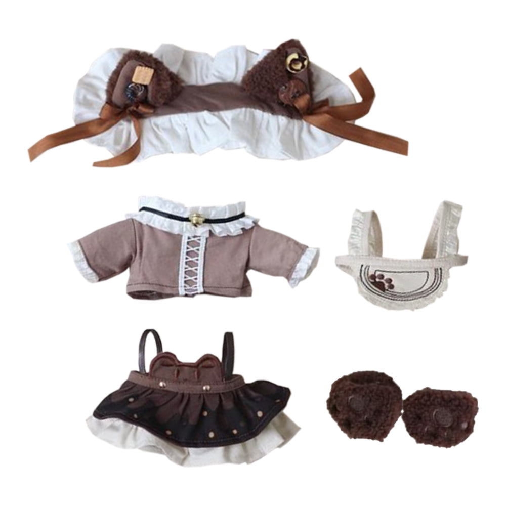 niannyyhouse 20cm Plush Doll Clothes Headdress Shirt Dress Apron Shoes Cat Paw Maid Sets 8in Doll Accessories Dress Up