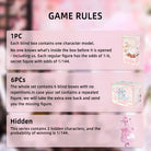 Blind Box: Blind boxes are completely random, and we do not accept requests for specific styles. The probability of opening each ordinary doll is 1/6. This series contains 2 hidden dolls, and the probability of winning is 1/144. 1PC---(Each blind box contains one doll. )6PCs---(The whole set contains 6 blind boxes, no duplication.)