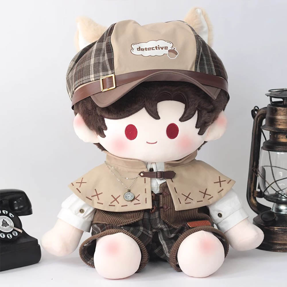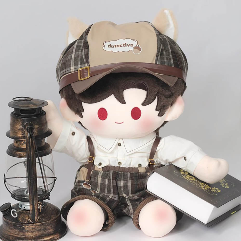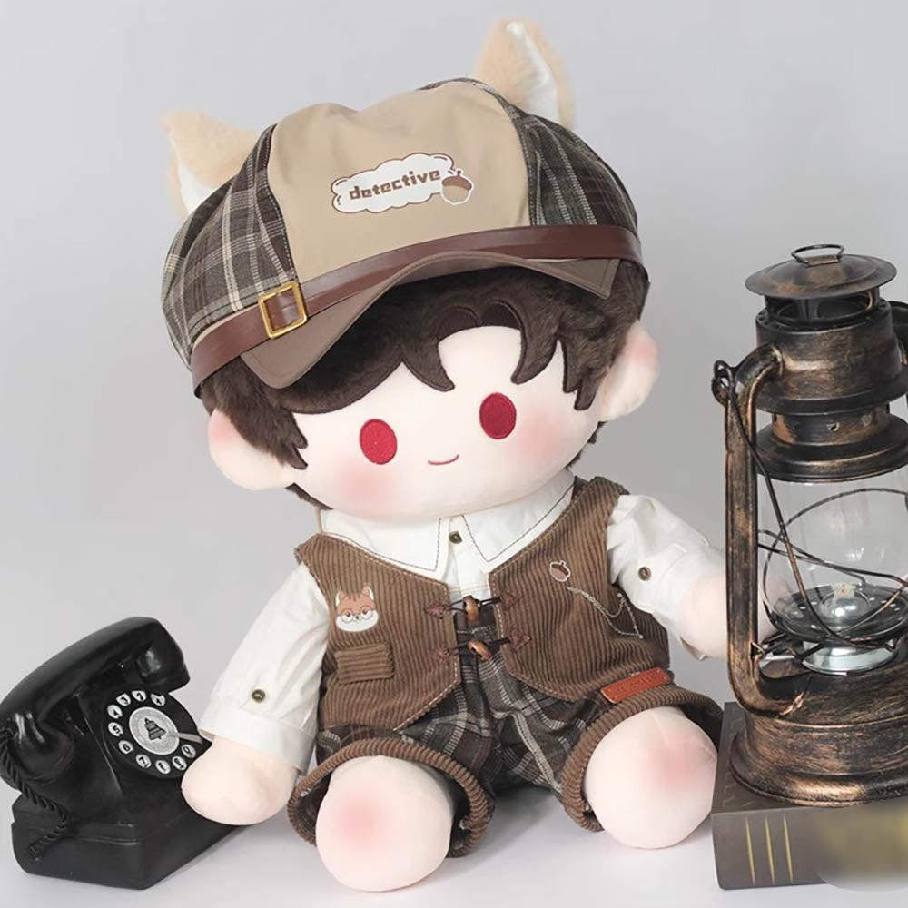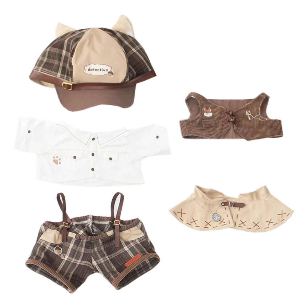 niannyyhouse 40cm Sitting Doll Clothes Hat Shirt Overalls Vest Shawl Brown Vintage Detective Outfit Plush Toys Dress Up