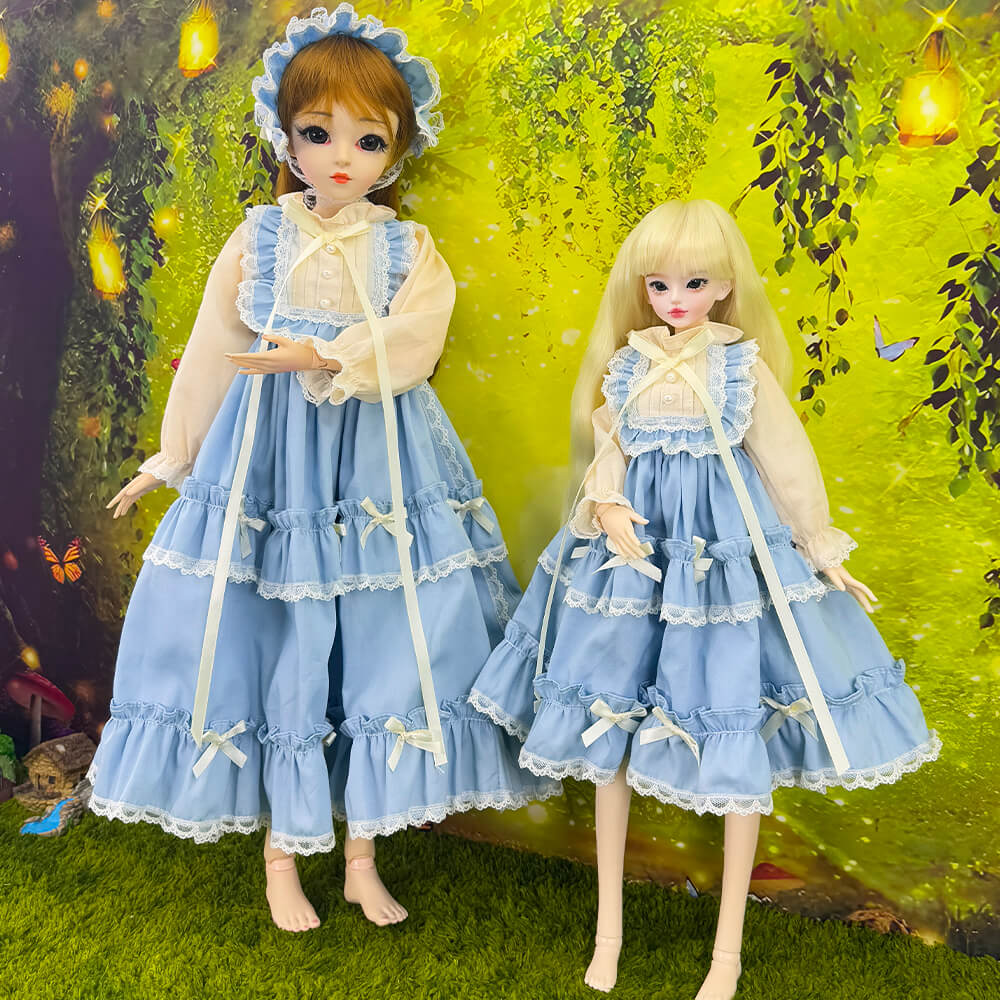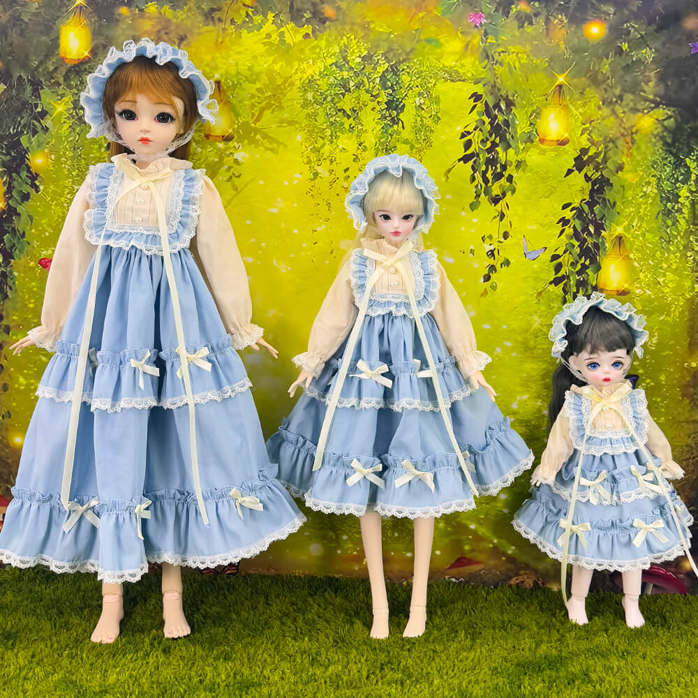 niannyyhouse BJD Doll Clothes for 1/3 1/4 1/6 Ball Jointed Dolls, Blue Vintage Maid Dress with Headwear, Dress Up Accessories