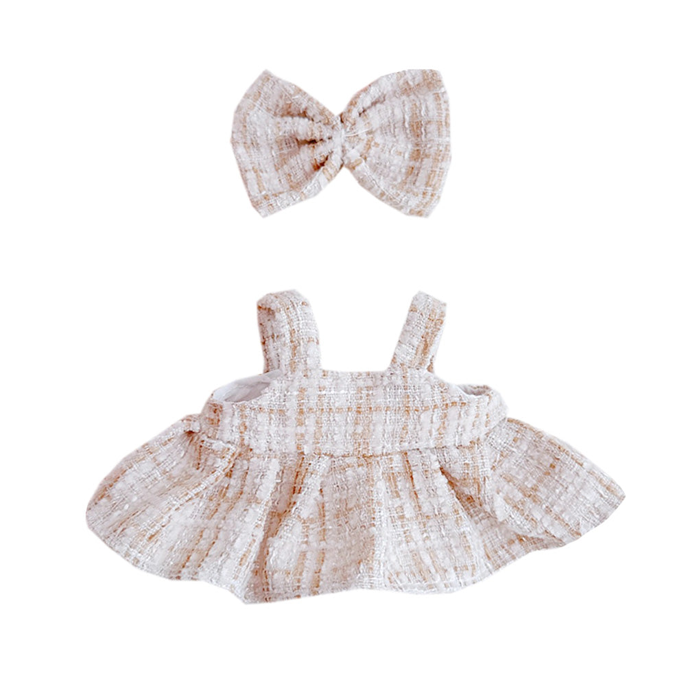 niannyyhouse Plush Doll Clothes Set, Bow Tie Suspender Skirt Outfit, Soft Stuffed Animal Accessories, 10-15cm
