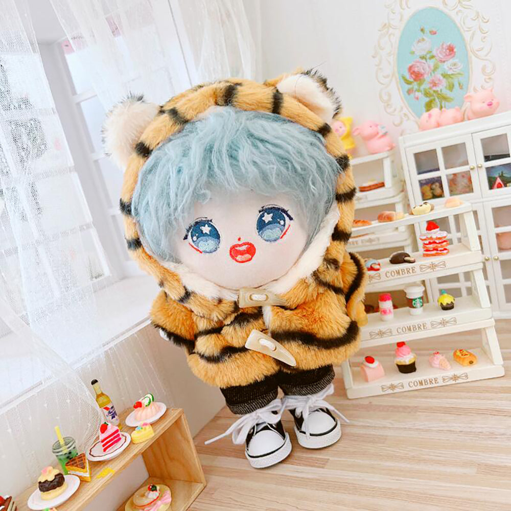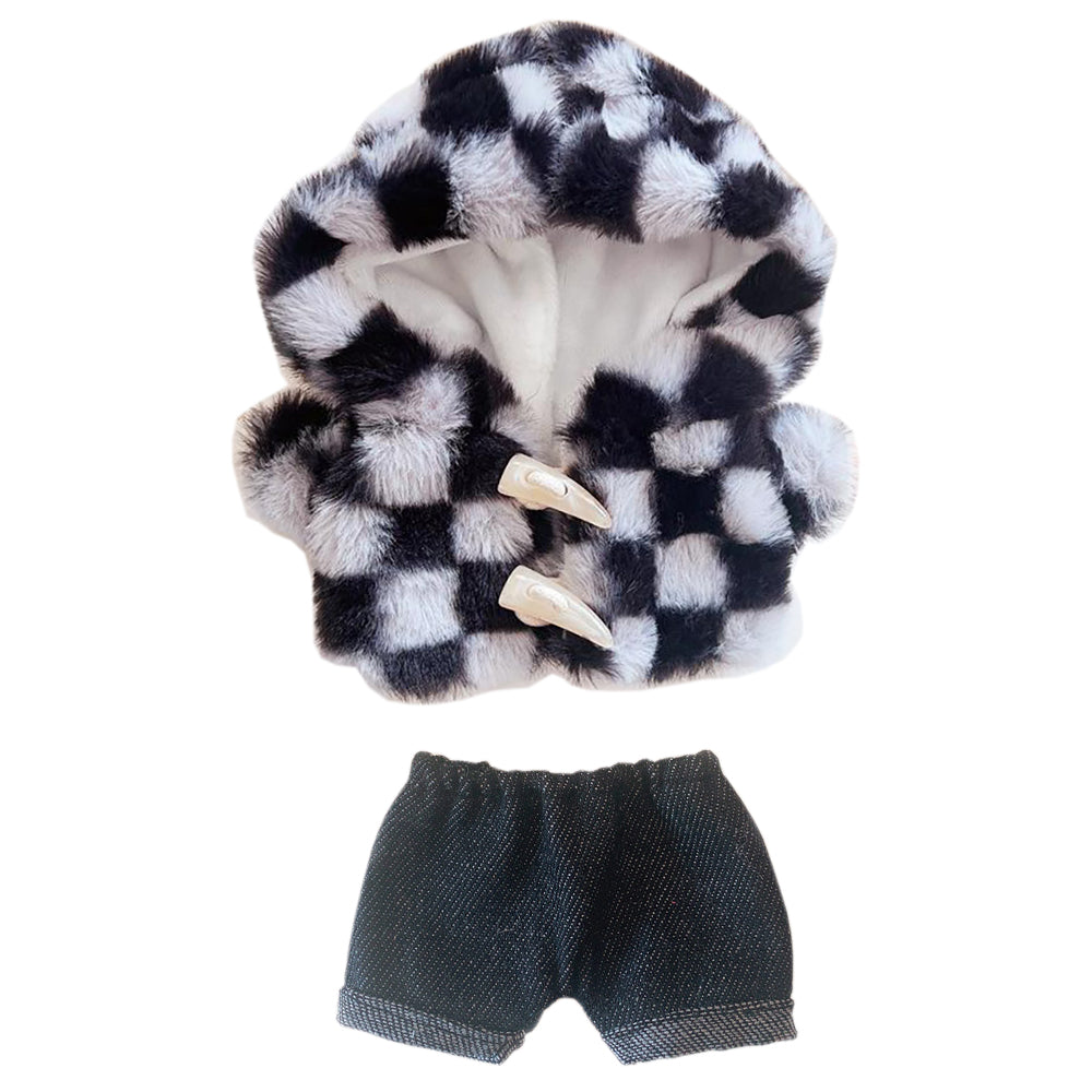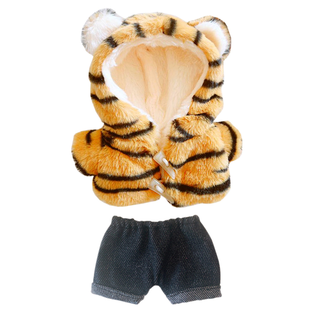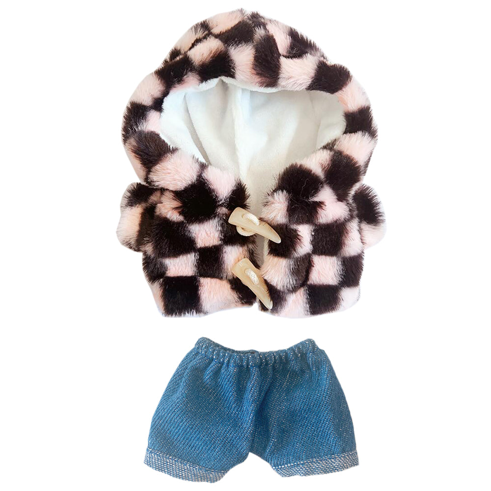 niannyyhouse Lattice Cow Tiger Coat Jeans 2-Piece Set 8in(20cm) Plush Doll Clothes Accessories