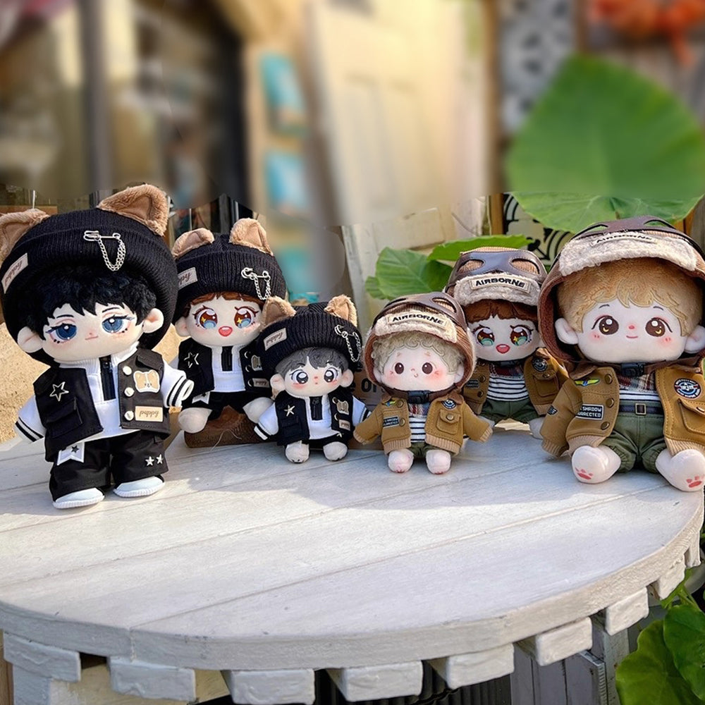 niannyyhouse 10cm 15cm 20cm Plush Doll Clothes Retro Pilot Suit with Hat Jacket T-Shirt Pants Scarf Stuffed Animal Dress Up Accessories