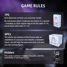 Blind Box: Blind boxes are completely random, and we do not accept requests for specific styles. The probability of opening each ordinary doll is 1/6. This series contains 1 hidden doll, and the probability of winning is 1/72. 1PC---(Each blind box contains one doll. )6PCs---(The whole set contains 6 blind boxes, no duplication.)