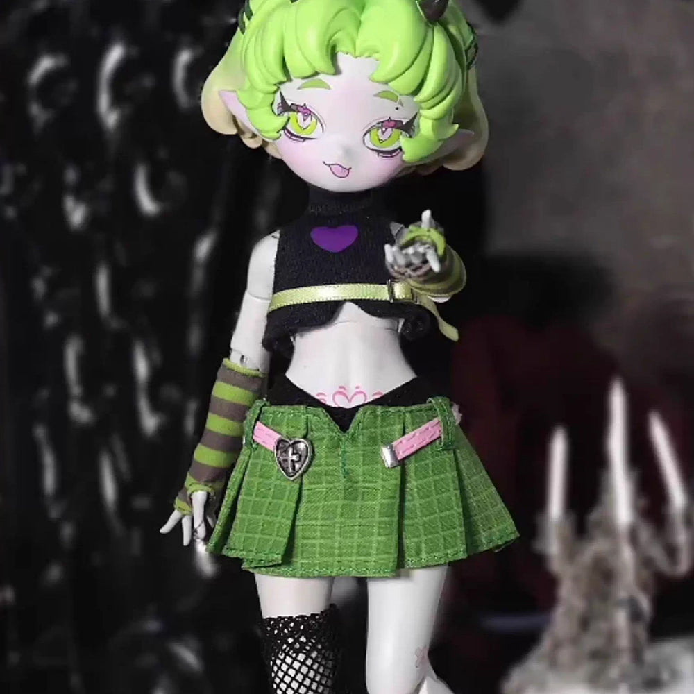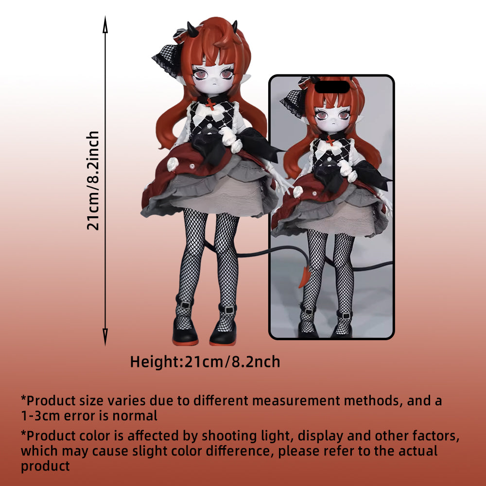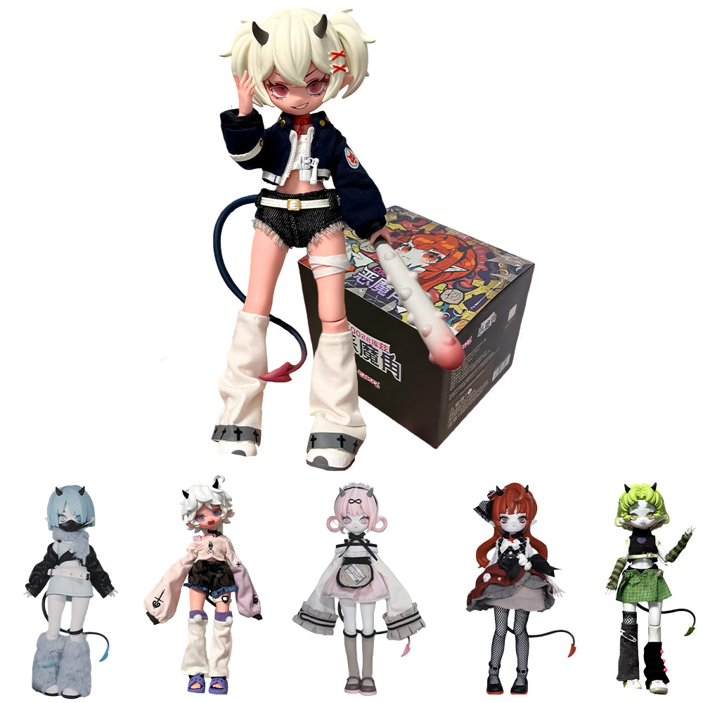 Interactive Design: Devil Horns Series, fully articulated doll with multiple points of articulation allowing for dynamic posing and display options to bring your collection to life. Clothing and accessories can be added, removed, and detached for free customization.