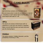 Blind Box: Blind boxes are completely random, and we do not accept requests for specific styles. The probability of opening each ordinary doll is 1/4. This series contains 1 hidden doll, and the probability of winning is 1/96. 1PC---(Each blind box contains one doll. )4PCs---(The whole set contains 4 blind boxes, no duplication.)