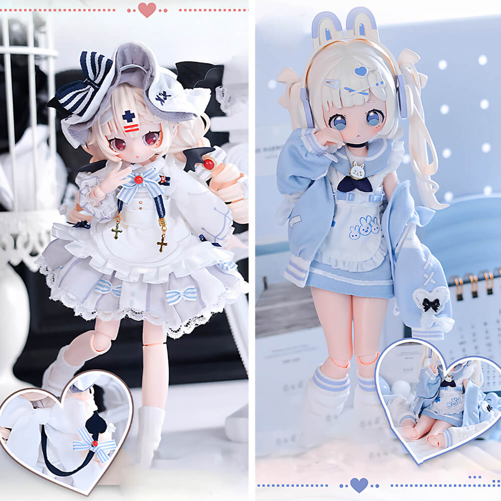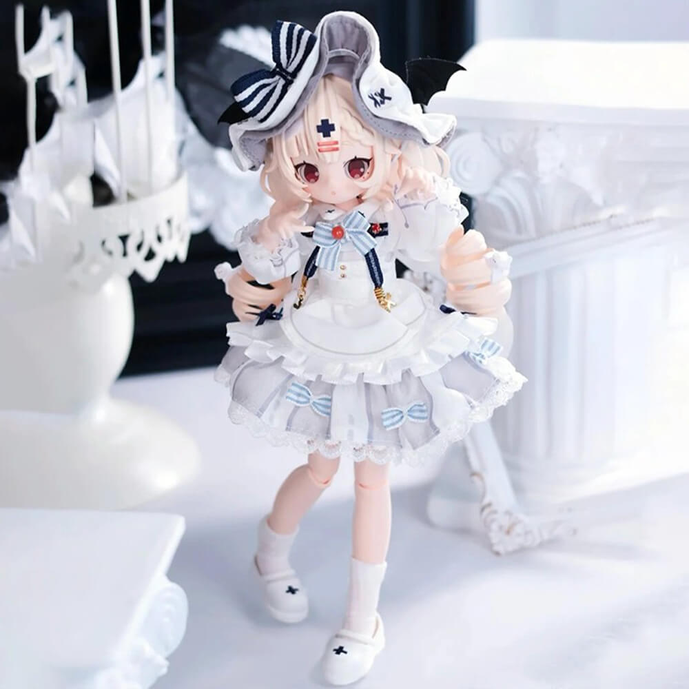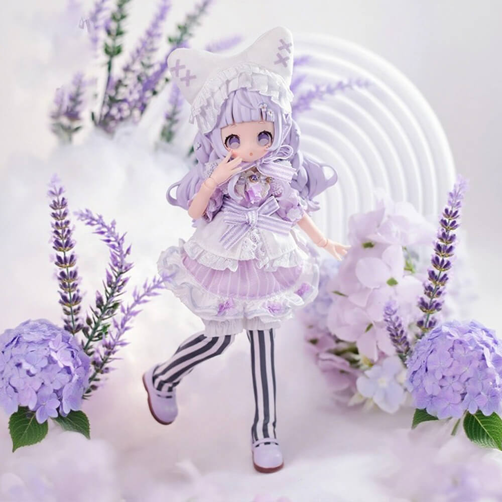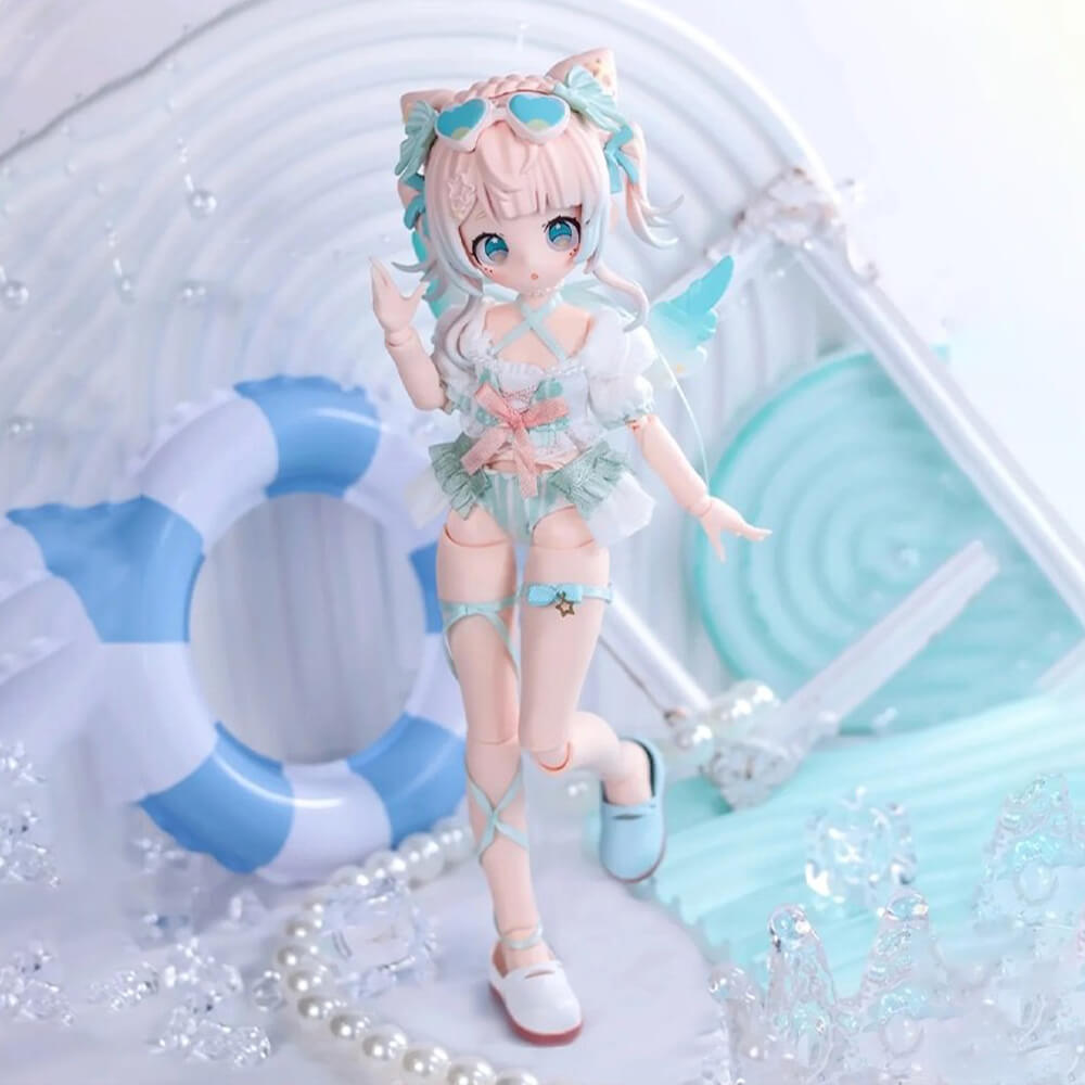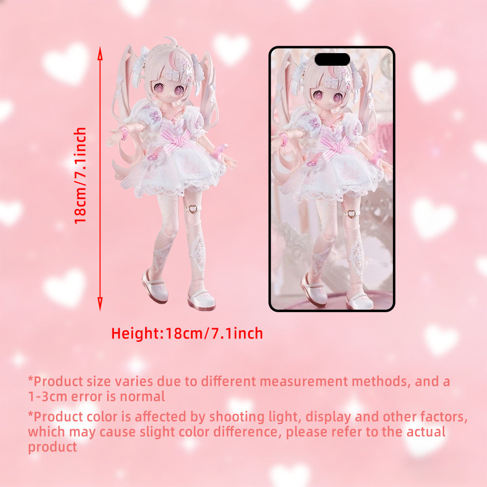 Interactive Design: BJD (Ball Jointed Doll) figurine from the Sugary Girls Series, featuring detailed articulation and poseable joints, allowing for various poses. Clothing and accessories can be added, removed, and detached for free customization.