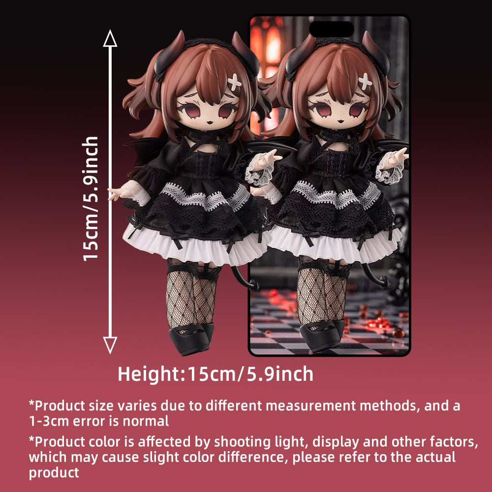 Size: The doll is about 15 cm/5.9 inches tall. making it an ideal size for display on shelves, desks, or in collector cases.