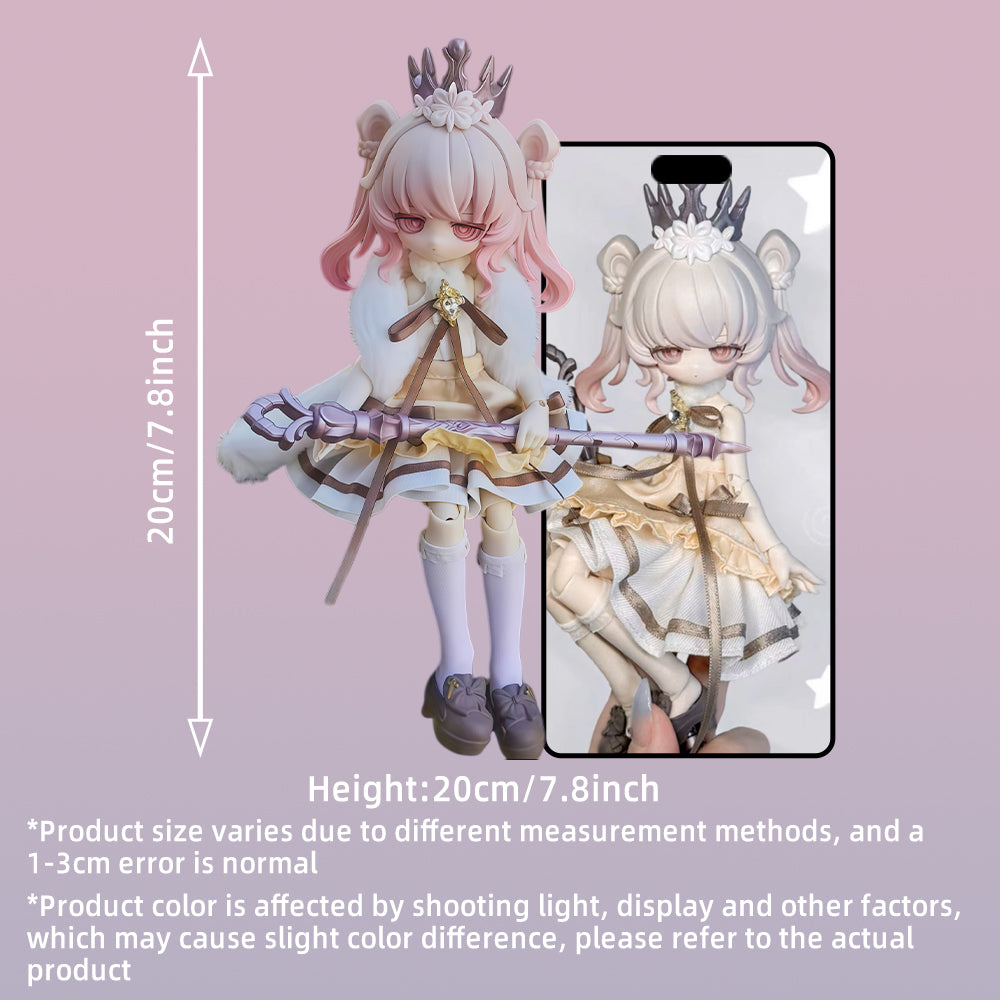 Size: The doll is about 20 cm/7.8 inches tall. making it an ideal size for display on shelves, desks, or in collector cases.