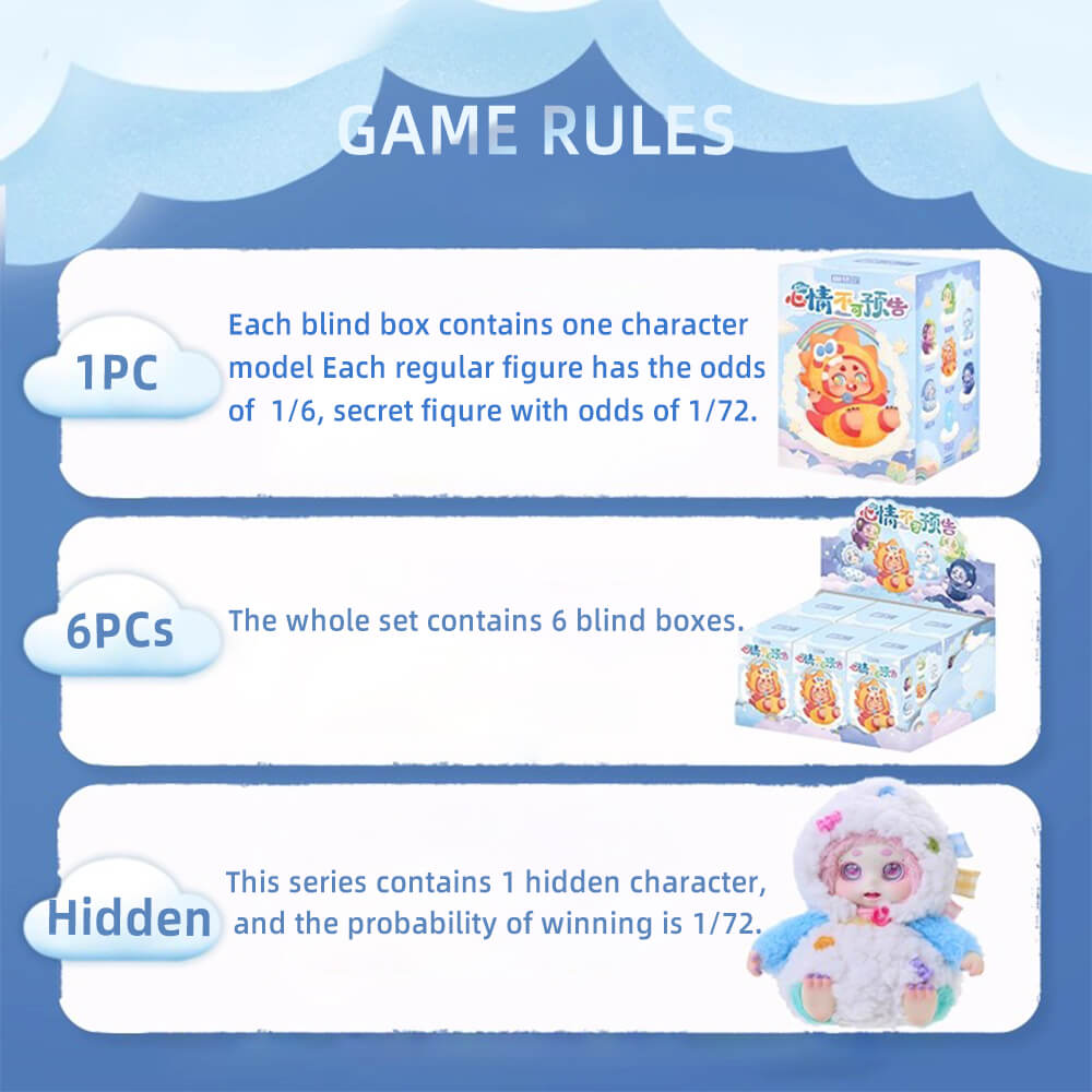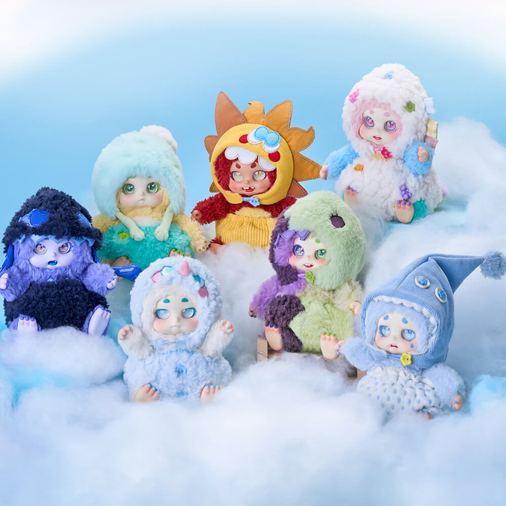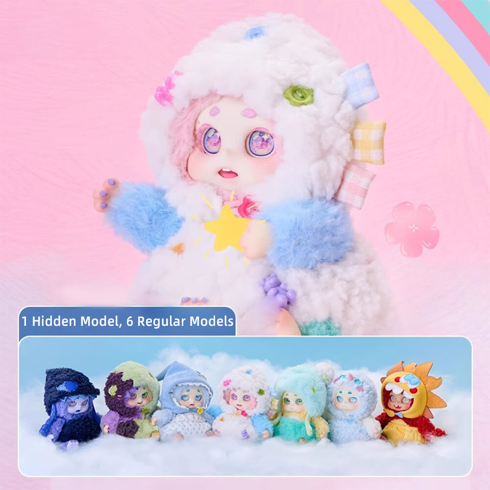 Interactive Design: Features charming characters inspired by different weather moods, each with unique expressions and designs. The face and eyes are detachable and interchangeable with other dolls in the same series. The doll's clothes are also removable, allowing for new combinations.