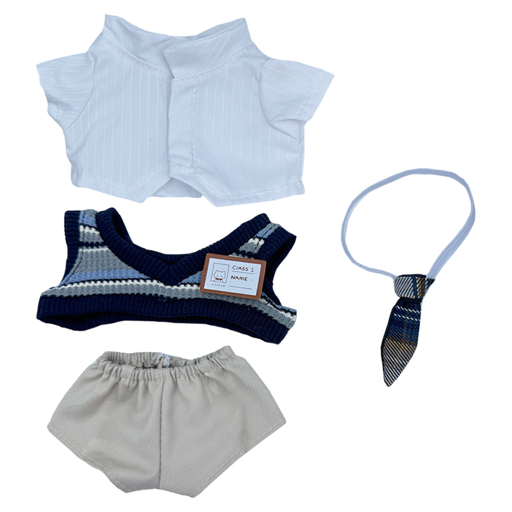 niannyyhouse 10cm Plush Doll Clothes Shirt Vest Pants Tie School Uniform Outfit 4in Doll Dressup