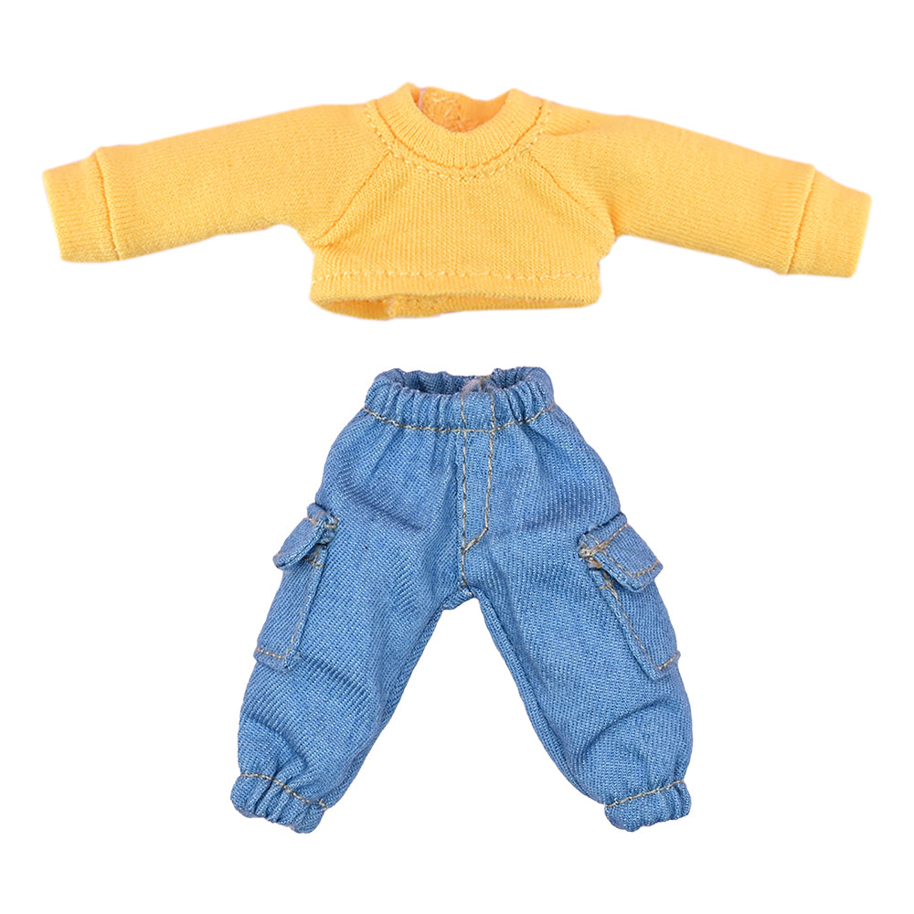niannyyhouse T-shirt Vest Denim Pocket Pants for Ob11 1/12 BJD Doll 4.3 inches (11 cm) Body